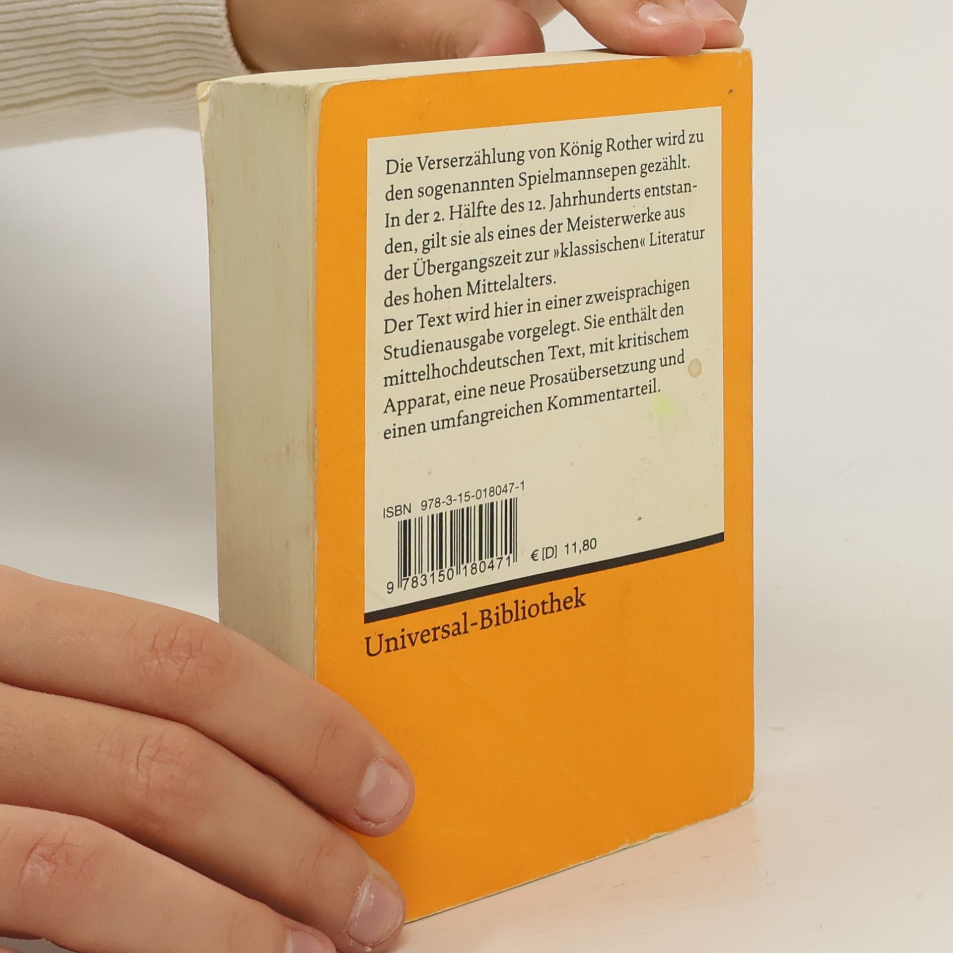 Die Verserzählung von König Rother, zu den so genannten „Spielmannsepen“ zählend, entstand in der 2. Hälfte des 12. Jahrhunderts. Sie gilt als ein Meisterwerk aus der Übergangszeit zur „klassischen“ Literatur des hohen Mittelalters. Die zweisprachige Studienausgabe enthält den mittelhochdeutschen Text mit kritischem Apparat, eine neue Prosaübersetzung und einen umfangreichen Kommentarteil mit Sachanmerkungen, Bibliographie und Nachwort.