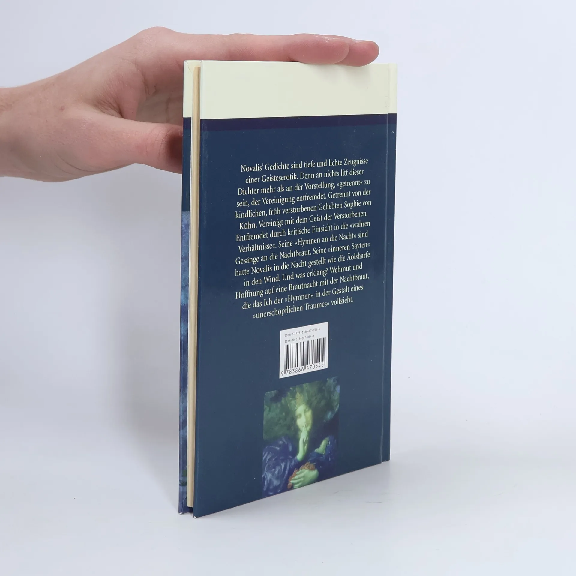 Novalis' Gedichte sind tiefe und lichte Zeugnisse einer Geisteserotik. Denn an nichts litt dieser Dichter mehr als an der Vorstellung, 'getrennt' zu sein, der Vereinigung entfremdet. Getrennt von der kindlichen, früh verstorbenen Geliebten Sophie von Kühn. Vereinigt mit dem Geist der Verstorbenen. Entfremdet durch kritische Einsicht in die 'wahren Verhältnisse'. Seine 'Hymnen an die Nacht' sind Gesänge an die Nachtbraut. Seine 'inneren Sayten' hatte Novalis in die Nacht gestellt wie die Äolsharfe in den Wind. Und was erklang? Wehmut und Hoffnung auf eine Brautnacht mit der Nachtbraut, die das Ich der 'Hymnen' in der Gestalt eines 'unerschöpflichen Traumes' vollzieht.