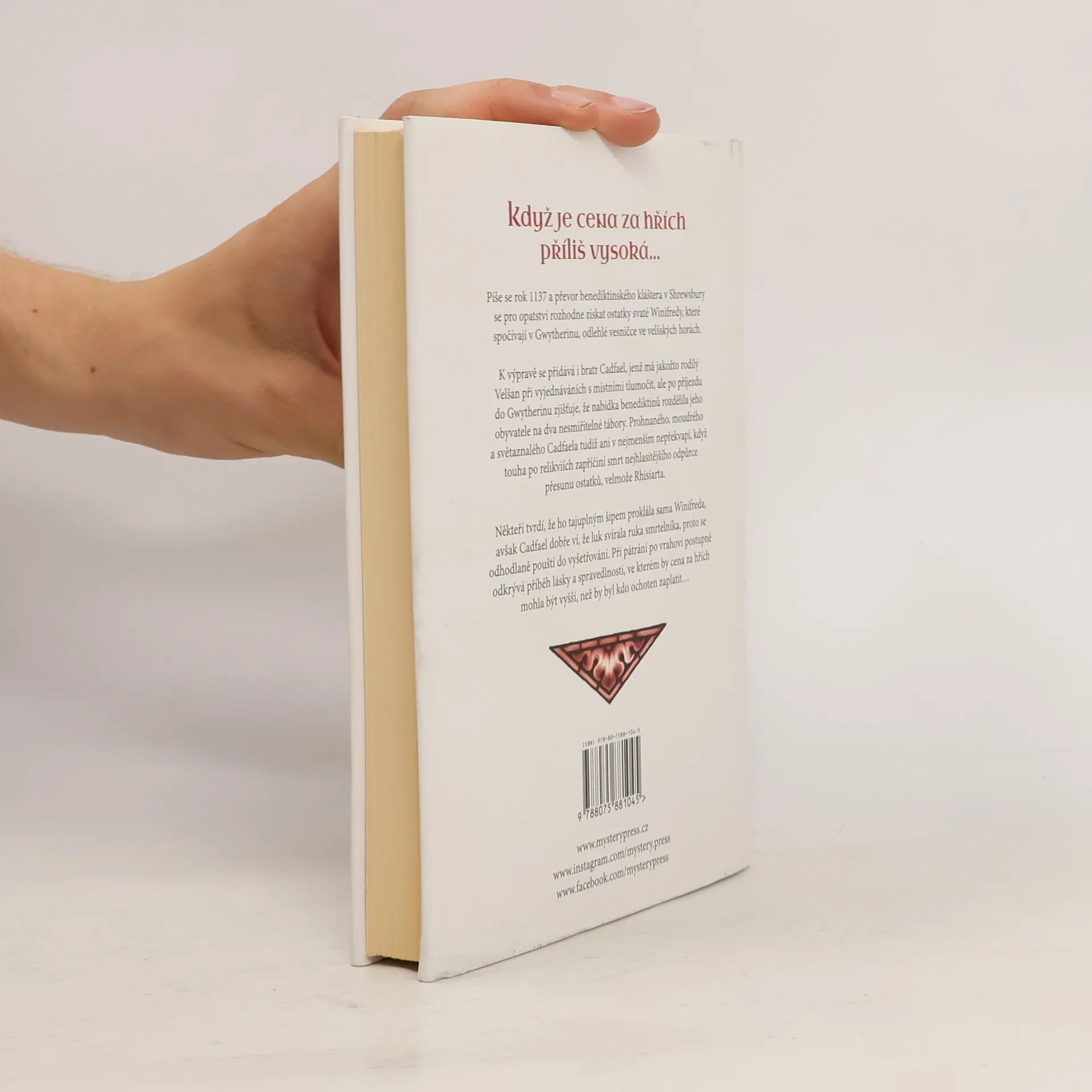 KDYŽ JE CENA ZA HŘÍCH PŘÍLIŠ VYSOKÁ… Píše se rok 1137 a převor benediktinského kláštera v Shrewsbury se pro opatství rozhodne získat ostatky svaté Winifredy, které spočívají v Gwytherinu, odlehlé vesničce ve velšských horách. K výpravě se přidává i bratr Cadfael, jenž má jakožto rodilý Velšan při vyjednáváních s místními tlumočit, ale po příjezdu do Gwytherinu zjišťuje, že nabídka benediktinů rozdělila jeho obyvatele na dva nesmiřitelné tábory. Prohnaného, moudrého a světaznalého Cadfaela tudíž ani v nejmenším nepřekvapí, když touha po relikviích zapříčiní smrt nejhlasitějšího odpůrce přesunu ostatků, velmože Rhisiarta. Někteří tvrdí, že ho tajuplným šípem proklála sama Winifreda, avšak Cadfael dobře ví, že luk svírala ruka smrtelníka, proto se odhodlaně pouští do vyšetřování. Při pátrání po vrahovi postupně odkrývá příběh lásky a spravedlnosti, ve kterém by cena za hřích mohla být vyšší, než by byl kdo ochoten zaplatit…