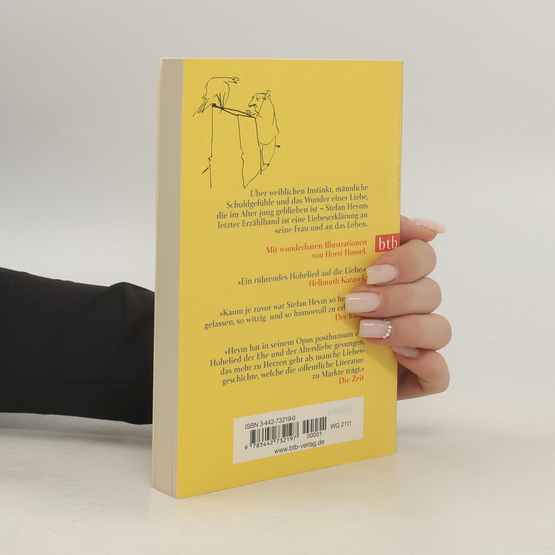 Über weiblichen Instinkt, männliche Schuldgefühle und das Wunder einer Liebe, die im Alter jung geblieben ist – Stefan Heyms letzter Erzählband ist eine Liebeserklärung an seine Frau und an das Leben. Selbstironisch, heiter und voller Zärtlichkeit schreibt Heym über die Ehe und das Altern. Kongenial ergänzt mit Zeichnungen von Horst Hussel.