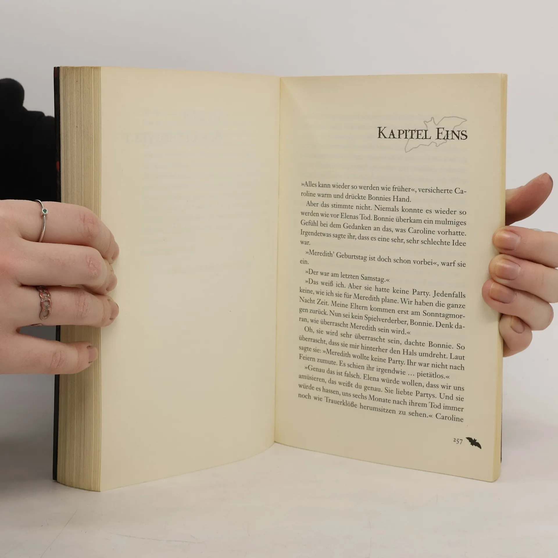 Sie sind blutdürstig, doch liebeshungrig Als Stefano in einer amerikanischen Kleinstadt der hübschen Elena begegnet, scheint sich die Geschichte von damals zu wiederholen. Denn wie Stefano verliebt sich auch Damon in das Mädchen. Doch während Stefano verzweifelt versucht, seinen Drang nach ihrem Blut zu beherrschen, legt Damon es genau darauf an: Skrupellos lockt er Elena zu sich, um von ihrem Blut zu trinken.
