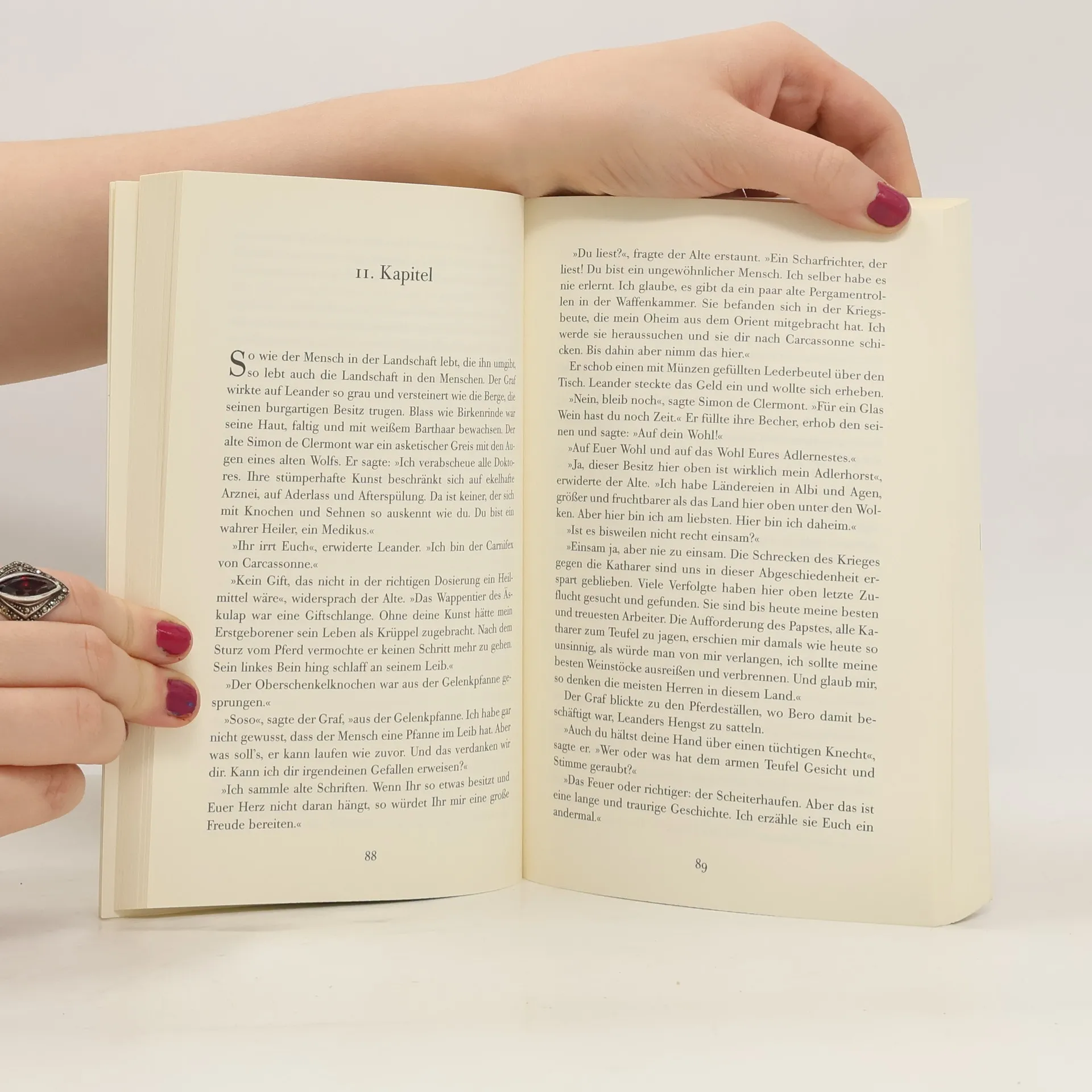 Im tiefsten Mittelalter wird Leander in die hundertjährige Henkersdynastie der südfranzösischen Stadt Carcassonne hineingeboren. Kunstvoll übt er sein grausiges Handwerk aus und kann den Verurteilten dank seiner medizinischen Kenntnisse einen schmerzlosen Tod bereiten. Sein einsames, stolzes Leben ändert sich, als eine verurteilte Ketzerin in ihm den Erben des heiligen Grals, des unermesslichen Schatzes der Katharer, zu erkennen glaubt. Das Amulett der Sterbenden wird dem Henker zum Schicksal. Denn die katholische Kirche bereitet die endgültige Vernichtung der Katharer vor.