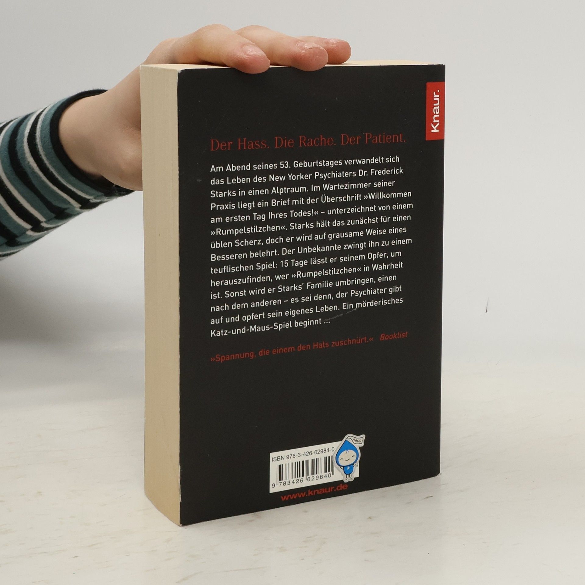 Am Abend seines 53. Geburtstages verwandelt sich das Leben des New Yorker Psychiaters Dr. Frederick Starks in einen Alptraum. Im Wartezimmer seiner Praxis liegt ein Brief mit der Überschrift »Willkommen am ersten Tag Ihres Todes!« - unterzeichnet von einem »Rumpelstilzchen«. Starks hält das zunächst für einen üblen Scherz, doch er wird auf grausame Weise eines Besseren belehrt.Der Unbekannte zwingt ihn zu einem teuflischen Spiel: 15 Tage lässt er seinem Opfer, um herauszufinden, wer »Rumpelstilzchen« in Wahrheit ist. Sonst wird er, einen nach dem anderen, Starks Familie umbringen - es sei denn, der Psychiater gibt auf und opfert sein eigenes Leben.Ein mörderisches Katz-und-Maus-Spiel beginnt ...