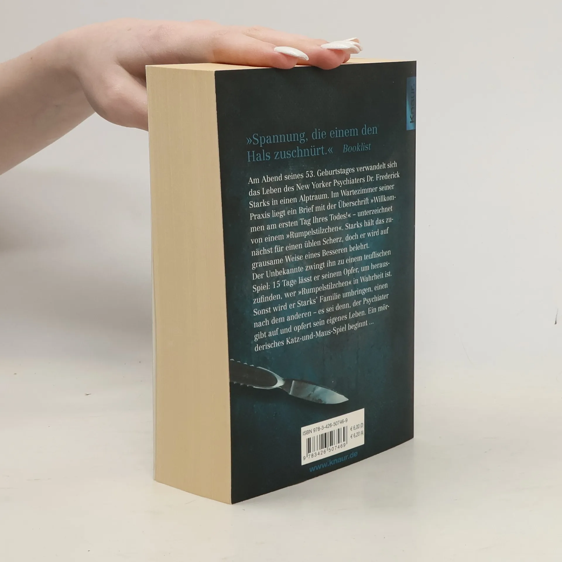 Am Abend seines 53. Geburtstages verwandelt sich das Leben des New Yorker Psychiaters Dr. Frederick Starks in einen Alptraum. Im Wartezimmer seiner Praxis liegt ein Brief mit der Überschrift »Willkommen am ersten Tag Ihres Todes!« - unterzeichnet von einem »Rumpelstilzchen«. Starks hält das zunächst für einen üblen Scherz, doch er wird auf grausame Weise eines Besseren belehrt.Der Unbekannte zwingt ihn zu einem teuflischen Spiel: 15 Tage lässt er seinem Opfer, um herauszufinden, wer »Rumpelstilzchen« in Wahrheit ist. Sonst wird er, einen nach dem anderen, Starks Familie umbringen - es sei denn, der Psychiater gibt auf und opfert sein eigenes Leben.Ein mörderisches Katz-und-Maus-Spiel beginnt ...