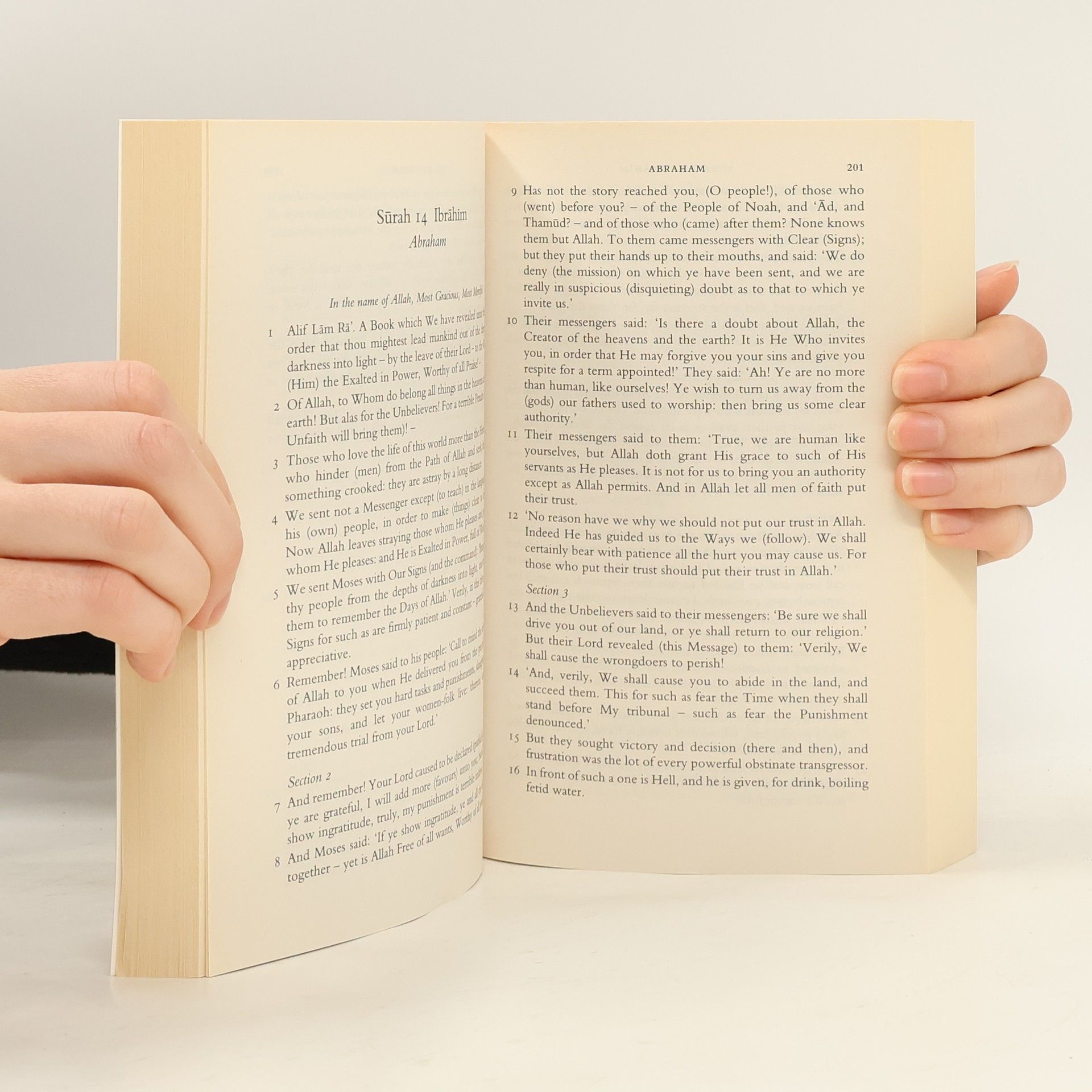 The Holy Qur'an is the Word of God whose truth was revealed to Muhammad by the Angel Gabriel. It is divided into 14 Suras or chapters, and was traditionally transmitted by word of mouth.