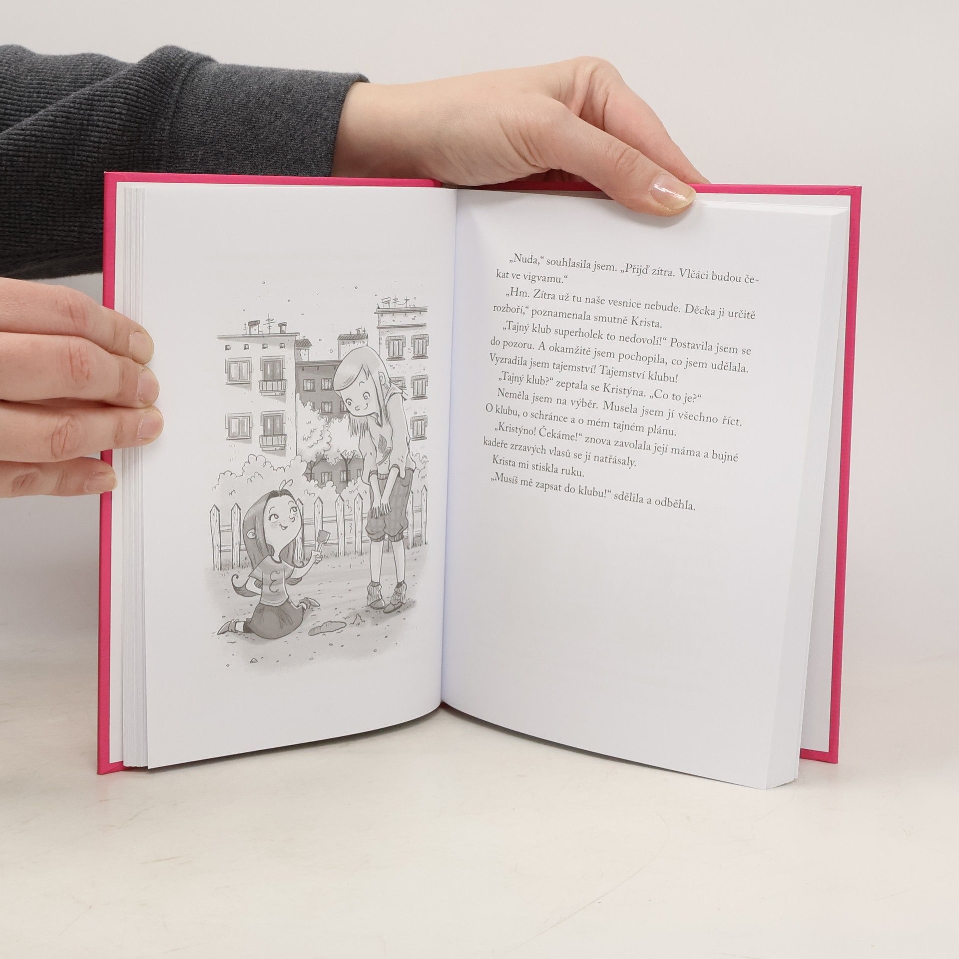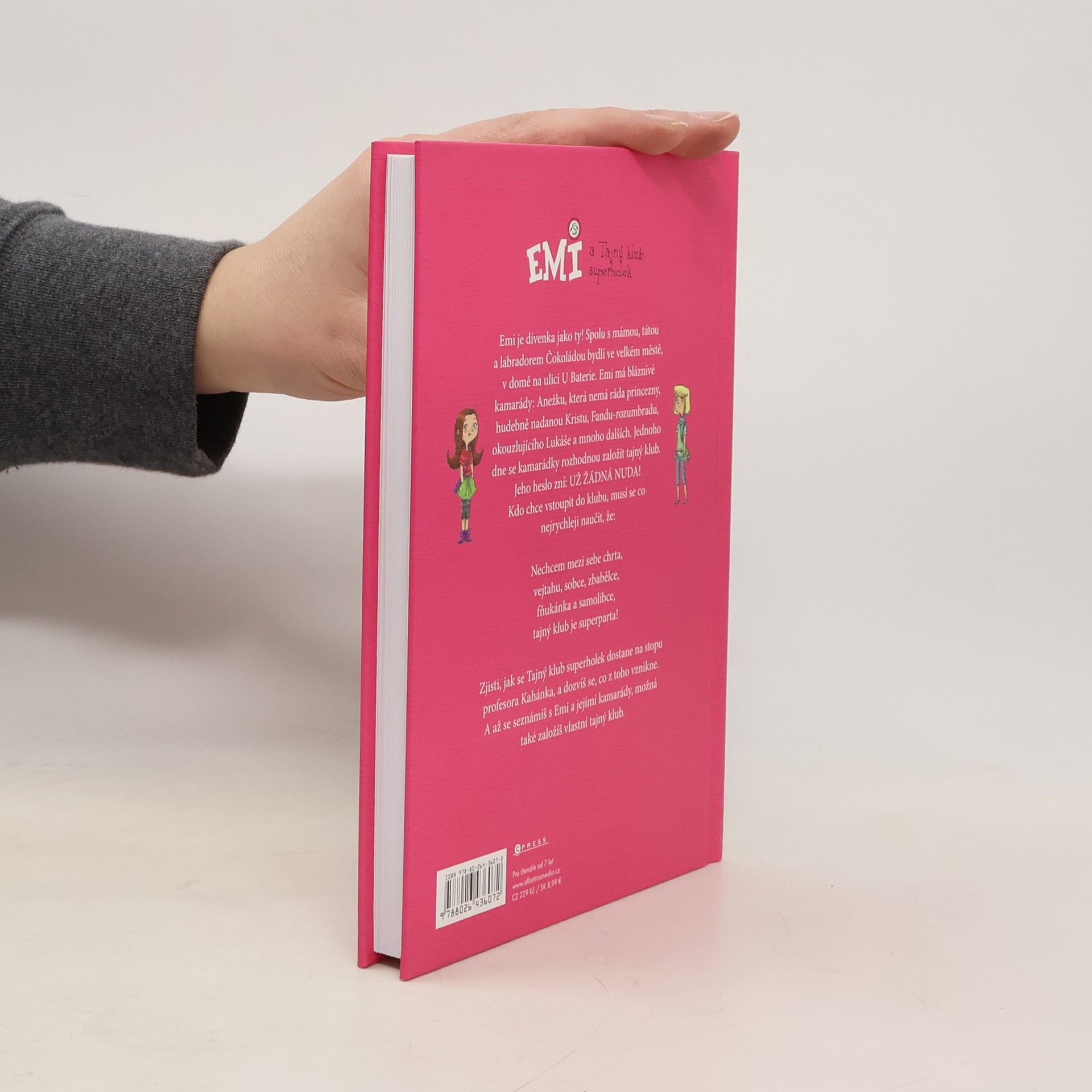 Jak zažít velké dobrodružství? Založ si tajný klub! Emi je dívenka jako ty! Spolu s mámou, tátou a labradorem Čokoládou bydlí ve velkém městě, v domě na ulici U Baterie. Emi má bláznivé kamarády: Anežku, která nemá ráda princezny, hudebně nadanou Kristu, Fandu-rozumbradu, okouzlujícího Lukáše a mnoho dalších. Jednoho dne se kamarádky rozhodnou založit tajný klub. Jeho heslo zní: UŽ ŽÁDNÁ NUDA! Kdo chce vstoupit do klubu, musí se co nejrychleji naučit, že: Nechcem mezi sebe chrta, vejtahu, sobce, zbabělce, fňukánka a samolibce, tajný klub je superparta! Zjisti, jak se Tajný klub superholek dostane na stopu profesora Kahánka, a dozvíš se, co z toho vznikne. A až se seznámíš s Emi a jejími kamarády, možná také založíš vlastní tajný klub.