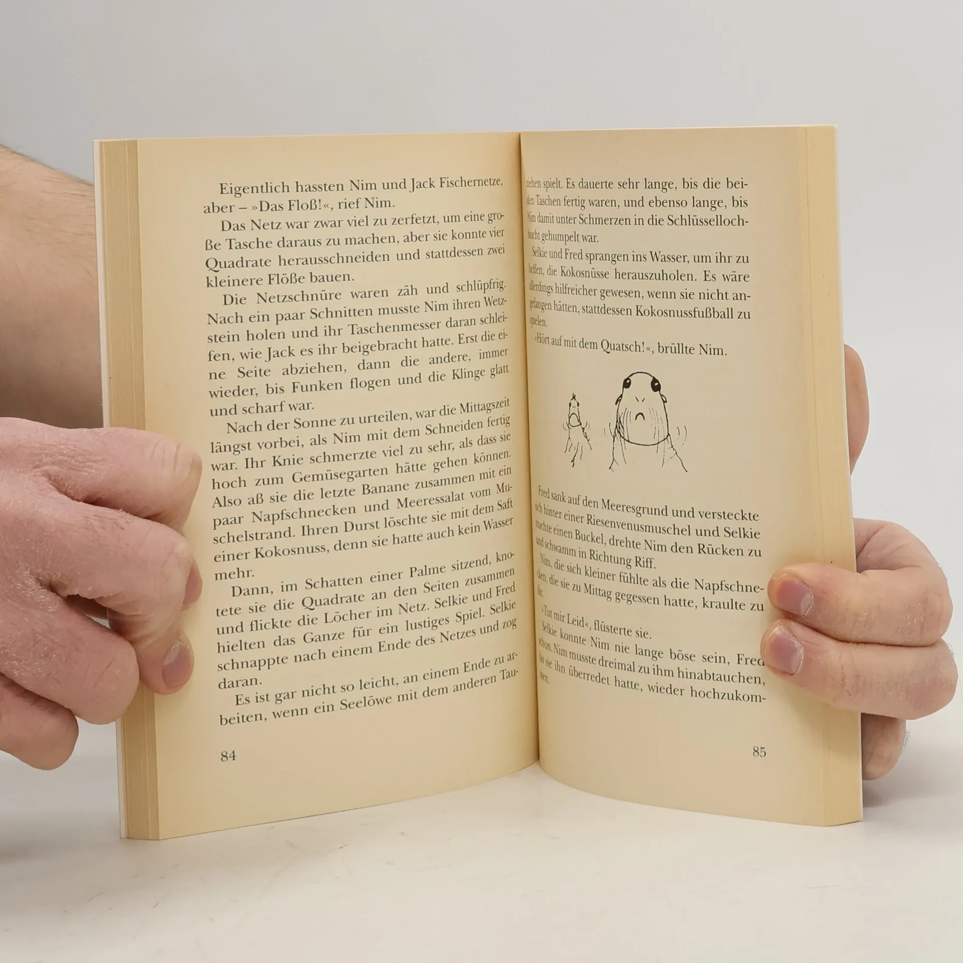 Nim lebt mit ihrem Vater, der Seelöwin Selkie und dem Leguan Fred, ganz im Stile einer modernen Robinsonade, auf einer sonst unbewohnten Insel im Ozean. Als der Vater auf einer Forschungsreise mit seinem Segelboot in einen Sturm gerät, wird ein Teil des Ruders beschädigt. Nim muss sich deshalb länger als geplant alleine durchschlagen. Sie übersteht einen Ausbruch des Inselvulkans ebenso wie einen tropischen Sturm. Per E-Mail steht Nim in ständigem Kontakt mit Alex Rover, einem Autor von Abenteuerbüchern, von dem sie sich Hilfe erhofft. Der Autor entpuppt sich zu Nims Enttäuschung als eher ängstliche Autorin Alex, die sich aber doch aufrafft und auf die Insel reist, um Nim zu helfen. Bald nach Alex' Ankunft taucht auch Nims Vater erschöpft, aber gesund wieder auf. (Quelle: Verzeichnis ZKL).