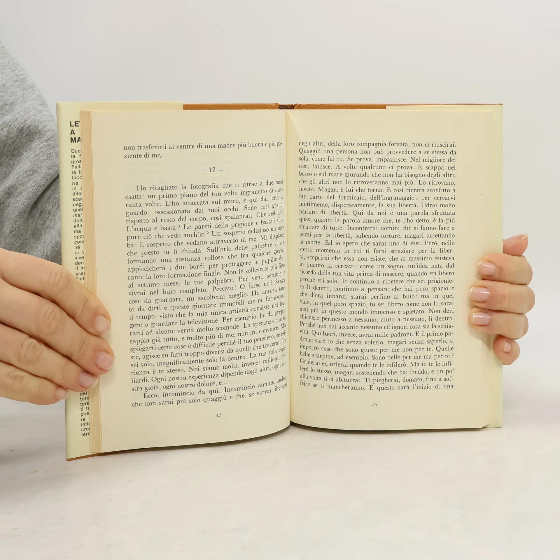 Il libro è il tragico monologo di una donna che aspetta un figlio guardando alla maternità non come a un dovere ma come a una scelta personale e responsabile. Una donna di cui non si conosce né il nome né il volto né l'età né l'indirizzo: l'unico riferimento che ci viene dato per immaginarla è che vive nel nostro tempo, sola, indipendente e lavora. Il monologo comincia nell'attimo in cui essa avverte d'essere incinta e si pone l'interrogativo angoscioso: basta volere un figlio per costringerlo alla vita? Piacerà nascere a lui? Nel tentativo di avere una risposta la donna spiega al bambino quali sono le realtà da subire entrando in un mondo dove la sopravvivenza è violenza, la libertà un sogno, l'amore una parola dal significato non chiaro.