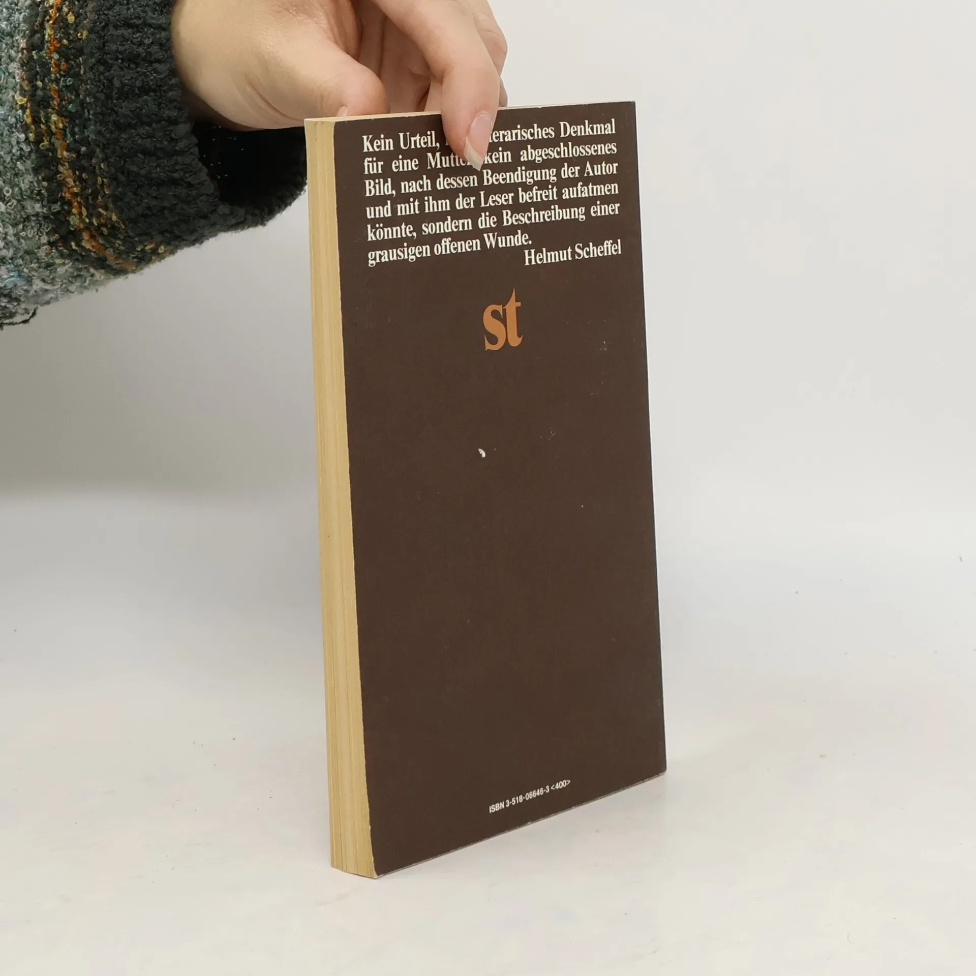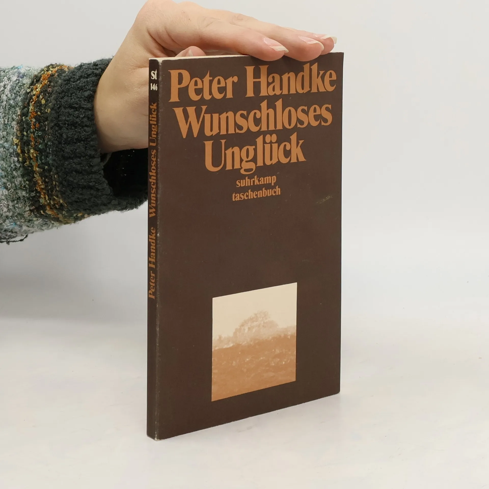 Ausgabe in großer Schrift „Unter der Rubrik VERMISCHTES stand in der Sonntagsausgabe der Kärntner ‚Volkszeitung’ folgendes: ‚In der Nacht zum Samstag verübte eine 51jährige Hausfrau aus A. (Gemeinde G.) Selbstmord durch Einnehmen einer Überdosis von Schlaftabletten.’ Es ist inzwischen fast sieben Wochen her, seit meine Mutter tot ist, und ich möchte mich an die Arbeit machen, bevor das Bedürfnis, über sie zu schreiben, das bei der Beerdigung so stark war, sich in die stumpfsinnige Sprachlosigkeit zurückverwandelt, mit der ich auf die Nachricht von dem Selbstmord reagierte.“ Peter Handke, geboren 1942 in Griffen (Kärnten), lebt heute in Paris.