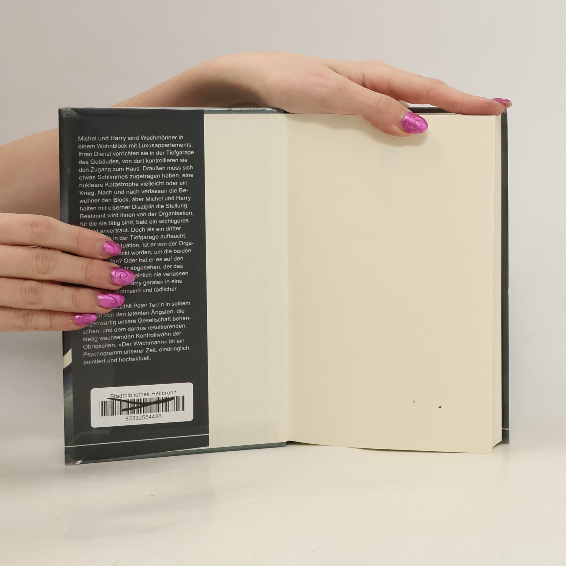 Michel und Harry sind Wachmänner in einem Wohnblock mit Luxusappartements. Ihren Dienst verrichten sie in der Tiefgarage des Gebäudes, von dort kontrollieren sie den Zugang zum Haus. Draußen muss sich etwas Schlimmes zugetragen haben, eine nukleare Katastrophe vielleicht oder ein Krieg. Nach und nach verlassen die Bewohner den Block, aber Michel und Harry halten mit eiserner Disziplin die Stellung. Bestimmt wird ihnen von der Organisation, für die sie tätig sind, bald ein wichtigeres Objekt anvertraut. Doch als ein dritter Wachmann in der Tiefgarage auftaucht, eskaliert die Situation. Ist er von der Organisation geschickt worden, um die beiden zu überprüfen? Oder hat er es auf den letzten Bewohner abgesehen, der das Gebäude augenscheinlich nie verlassen hat? Michel und Harry geraten in eine Spirale aus Wahnsinn und tödlicher Gewalt … Meisterhaft erzählt Peter Terrin in seinem Roman von den latenten Ängsten, die gegenwärtig unsere Gesellschaft beherrschen, und dem daraus resultierenden, stetig wachsenden Kontrollwahn der Obrigkeiten. »Der Wachmann« ist ein Psychogramm unserer Zeit, eindringlich, pointiert und hochaktuell.