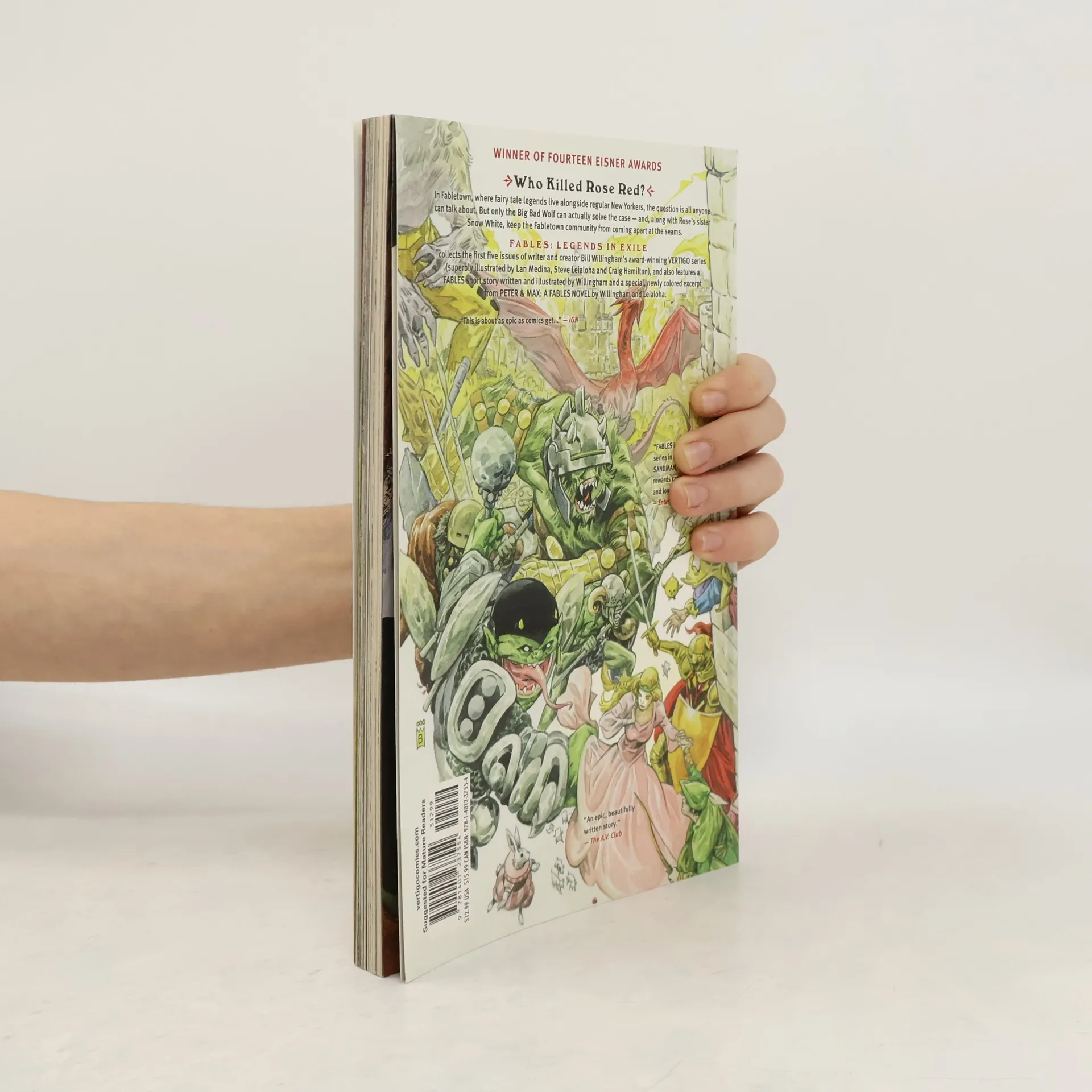 "Who killed Rose Red? In Fabletown, where fairy tale legends live alongside regular New Yorkers, the question is all anyone can talk about. But only the Big Bad Wolf can actually solve the case - and, along with Rose's sister Snow White, keep the Fabletown community from coming apart at the seams." -- Page [4] cover.
