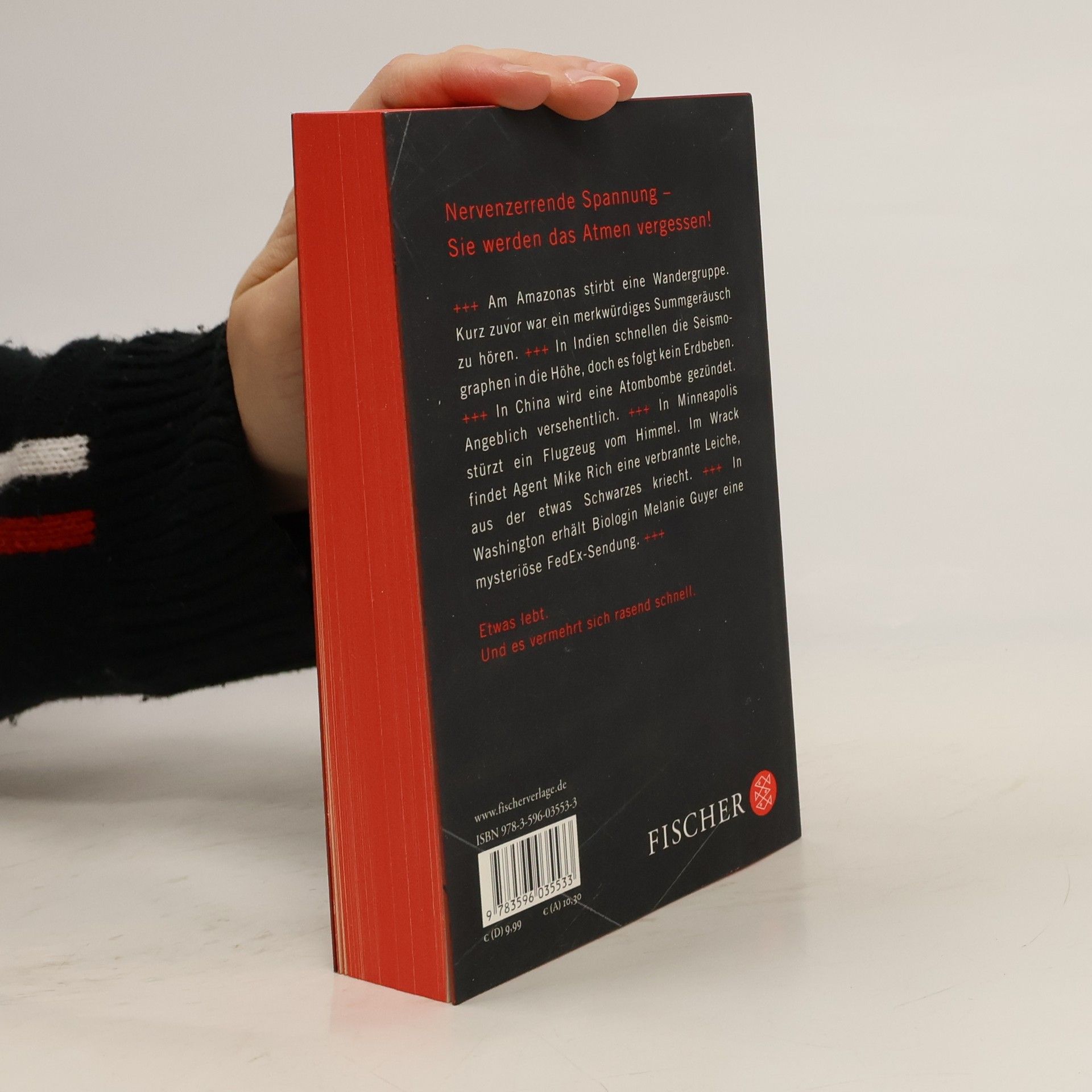 Etwas lebt. Und es vermehrt sich rasend schnell. Am Amazonas stirbt eine Wandergruppe. Kurz zuvor war ein merkwürdiges Summgeräusch zu hören. In Indien schnellen die Seismographen in die Höhe, doch es folgt kein Erdbeben.In China wird eine Atombombe gezündet. Angeblich versehentlich.In Minneapolis stürzt ein Flugzeug vom Himmel. Im Wrack findet Agent Mike Rich eine verbrannte Leiche aus der etwas Schwarzes kriecht.Biologin Melanie Guyer erhält in Washington eine FedEx-Sendung. Ein mysteriöser Fund von den Nazca-Linien. Nervenzerrende Spannung – Sie werden das Atmen vergessen!