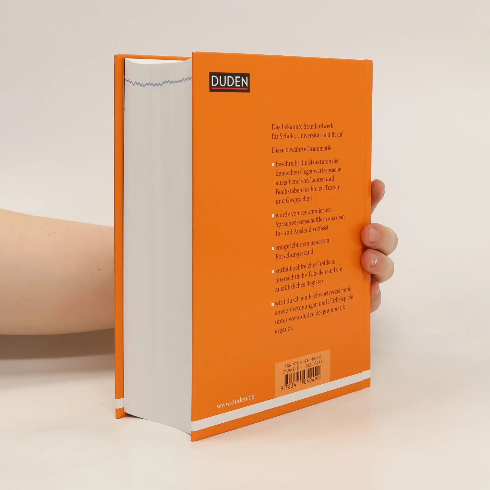 „Duden - Die Grammatik“ ist eine wissenschaftlich exakte und umfassende Beschreibung des Aufbaus der deutschen Sprache vom Laut über das Wort und den Satz bis hin zum Text. Der Band beschreibt als erste Gebrauchsgrammatik auch systematisch die Eigenschaften gesprochener Sprache. Die Grammatik umfasst die Teile „Phonem und Graphem“, „Intonation“, „Das Wort“ (Was ist ein Wort? Wortarten, Wortbildung), „Der Satz“, „Der Text“ und „Die gesprochene Sprache“. Ein Fachwortverzeichnis sowie Vertonungen und Hörbeispiele finden Sie unter www. duden. de/grammatik.