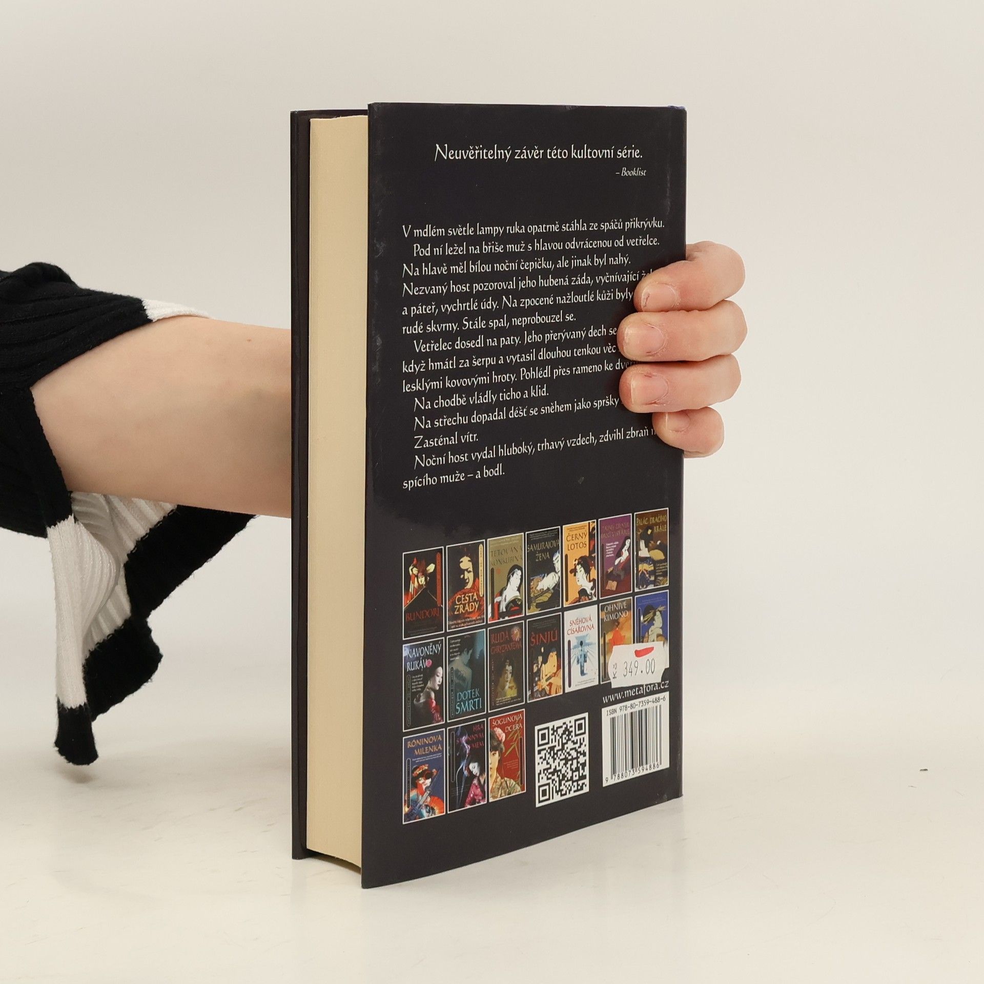 Sano Ičiró stojí před nejnebezpečnějším případem své kariéry. Kdo se pokusil zavraždit šóguna? Jsme v Japonsku, píše se rok 1709… Šógun je starý a nemocný. Sano Ičiró, kdysi druhý muž ve státě, je dvorskými intrikami zbaven vysokého úřadu a degradován na obyčejného policistu městské hlídky. A nejen to. Také jeho manželství je v troskách. Nevyzná se už ani ve své ženě Reiko, natož v tom, proč jeho dlouholetý sok Janagisawa uzavřel nepochopitelné spojenectví se šógunovým synovcem a následníkem Ienobuem, kterého by měl naopak nenávidět. Co za tím vězí? A pak dojde k neuvěřitelnému zločinu. Někdo pokusí zavraždit šóguna. Ve spánku, v jeho vlastní ložnici. A také zbraň je naprosto neobvyklá. Útočník mu zasadí několik bodných ran vějířem s ostrými kovovými hroty. Sano se opět ocitá v centru dění. Před sebou má nejdůležitější a nejnebezpečnější případ, jaký kdy musel vyšetřit. Znelíbí-li se šógunovu nástupci, který ho vůbec nemá v lásce, bude odsouzen k smrti i s celou rodinou. Na Sanově pomoci je přitom závislá i rodina jeho hlavního dvořana a přítele Hiraty, který ji opustil, když se stal hříčkou temných sil, rozpoutaných jistou tajnou společností. Propadá jim čím dál víc… A ani děti Sanovi a Reiko nic neulehčí, hlavně proto, že už přestávají být dětmi. Sano se nečekaně ocitá v centru vzpoury, uprostřed občanské války, jež ohrožuje celé Japonsko. Z nepřátel se stávají spojenci a všechno spěje k ohromujícímu rozuzlení…