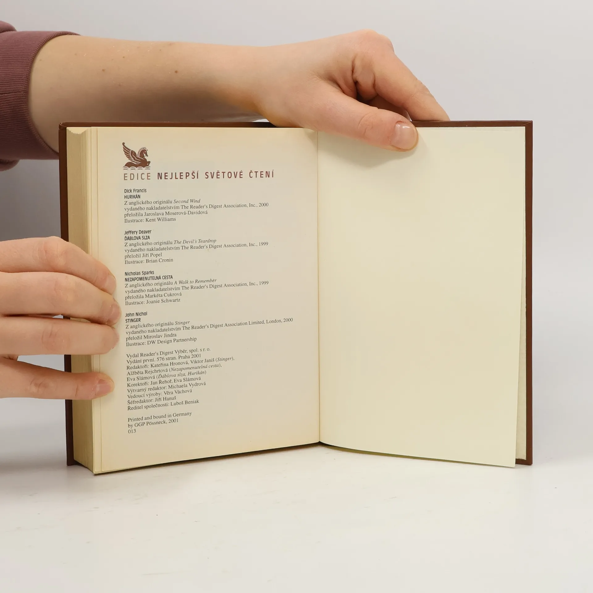 Nejlepší světové čtení. Hurikán. Ďáblova slza. Nezapomenutelná cesta. Stinger, Jeffery Deaver, Dick Francis, John Nichol, Nicholas Sparks