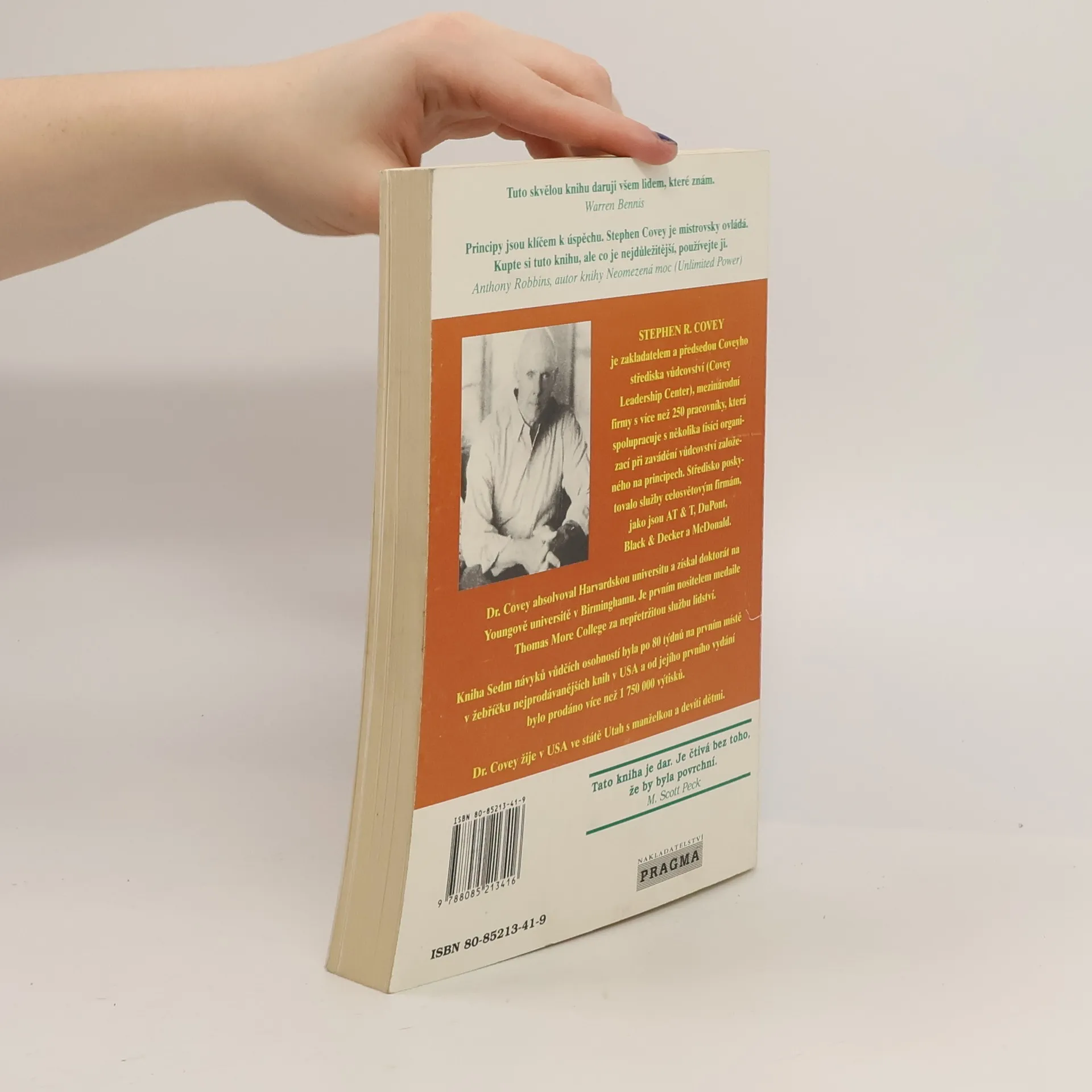 Dvěma slovy: trvalý bestseller - tato kniha byla přeložena do zhruba třiceti jazyků a prodalo se jí přes patnáct miliónů výtisků. Covey shrnuje a do sedmi návyků strukturalizuje moudrost dvou tisíc let. Inspiruje se křesťanstvím, judaismem, taoismem, budhismem, managementem a leadershipem. Nepíše ani tak o praktikách a technikách, jako o přirozených přírodních principech. Ty, na rozdíl od přírodních zákonů, respektovat můžeme, ale nemusíme. V případě, že se rozhodneme tak neučinit, nedivme se, jaké že to plody našeho života sklízíme. Kniha je určena pro všechny, kteří chtějí zlepšit kvalitu svého života. Pro leadery je tato kniha zcela zásadní.... celý text