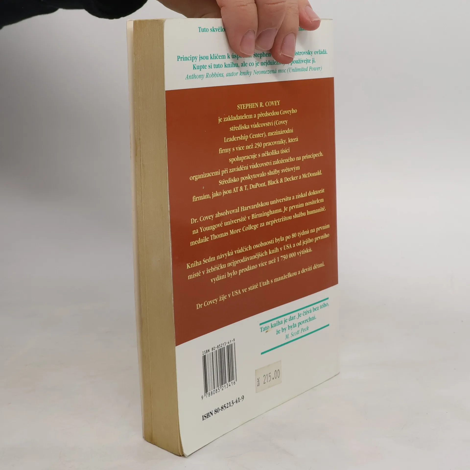 Dvěma slovy: trvalý bestseller - tato kniha byla přeložena do zhruba třiceti jazyků a prodalo se jí přes patnáct miliónů výtisků. Covey shrnuje a do sedmi návyků strukturalizuje moudrost dvou tisíc let. Inspiruje se křesťanstvím, judaismem, taoismem, budhismem, managementem a leadershipem. Nepíše ani tak o praktikách a technikách, jako o přirozených přírodních principech. Ty, na rozdíl od přírodních zákonů, respektovat můžeme, ale nemusíme. V případě, že se rozhodneme tak neučinit, nedivme se, jaké že to plody našeho života sklízíme. Kniha je určena pro všechny, kteří chtějí zlepšit kvalitu svého života. Pro leadery je tato kniha zcela zásadní.... celý text