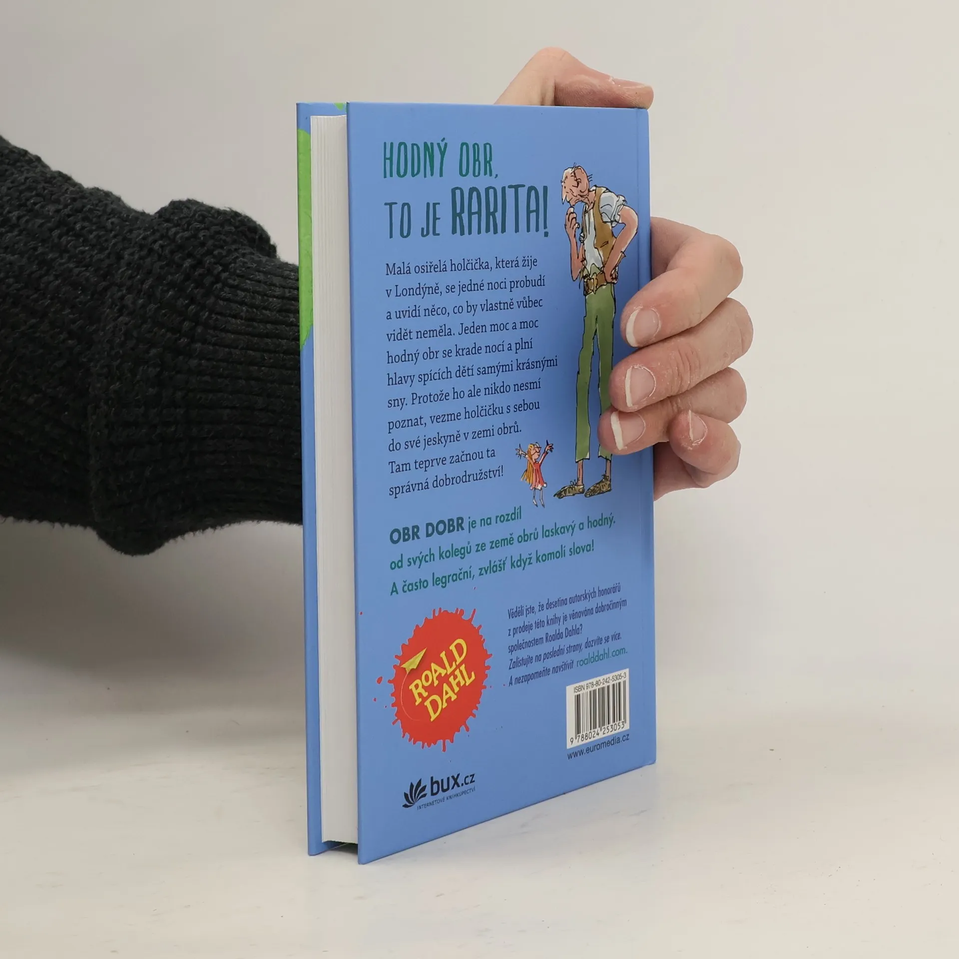 Malá osiřelá holčička, která žije v Londýně, se jedné noci probudí a uvidí něco, co by vlastně vůbec vidět neměla. Jeden moc a moc hodný obr se krade nocí a plní hlavy spících dětí samými krásnými sny. Protože ho ale nikdo nesmí poznat, vezme holčičku s sebou do své jeskyně v zemi obrů. Tam teprve začnou ta správná dobrodružství! Knihu zfilmoval Steven Spielberg. Stejnojmenný film přijde do českých kin 30.6.2016.