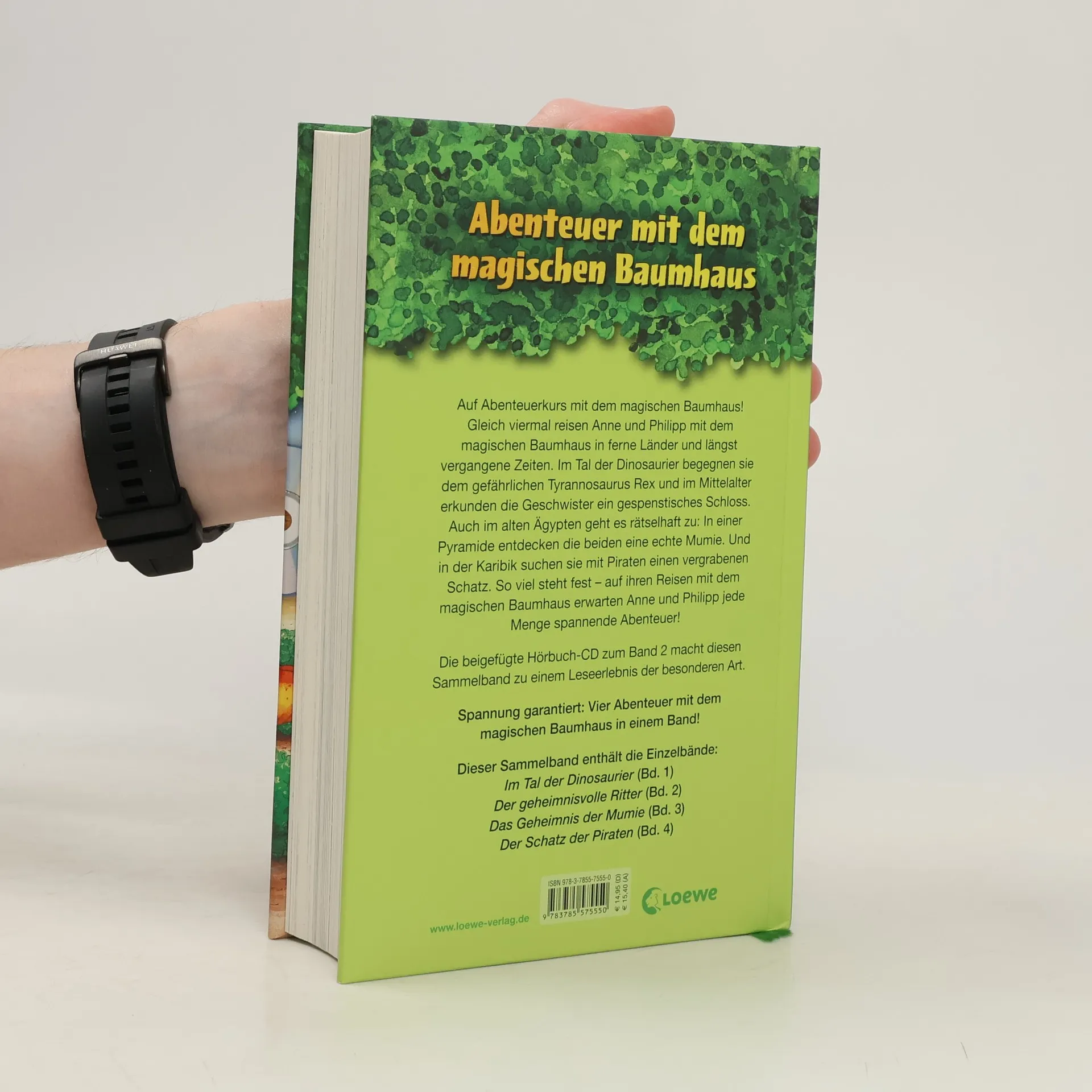 Das Buch ist in deiner Buchhandlung und vielen Online-Shops erhältlich! + Bücher, die Kinder gerne lesen + Beliebte Themen: Abenteuer, Tiere, fremde Länder + Hochwertiges Hardcover + Viele Illustrationen + Über 10 Millionen verkaufte Exemplare der Baumhaus-Reihe + Ausgewogenes Text-Bild-Verhältnis + Große Schrift + Kurze Kapitel + Auf Abenteuerkurs mit dem magischen Baumhaus! Anne und Philipp reisen gleich viermal in ferne Länder und vergangene Zeiten. Im Tal der Dinosaurier begegnen sie dem Tyrannosaurus Rex und im Mittelalter erkunden sie ein gespenstisches Schloss. Im alten Ägypten entdecken sie in einer Pyramide eine echte Mumie, und in der Karibik suchen sie mit Piraten nach einem vergrabenen Schatz. Ihre Reisen mit dem magischen Baumhaus sind voller spannender Abenteuer! Die beigefügte Hörbuch-CD zum Band 2 macht diesen Sammelband zu einem besonderen Leseerlebnis. Dieser Sammelband enthält die Einzelbände: „Im Tal der Dinosaurier“ (Bd. 1), „Der geheimnisvolle Ritter“ (Bd. 2), „Das Geheimnis der Mumie“ (Bd. 3) und „Der Schatz der Piraten“ (Bd. 4). Die beliebte Kinderbuch-Reihe von Bestsellerautorin Mary Pope Osborne lässt die Geschwister Anne und Philipp durch die Zeit reisen, spannende Abenteuer erleben, ferne Länder entdecken und berühmte Persönlichkeiten kennenlernen.