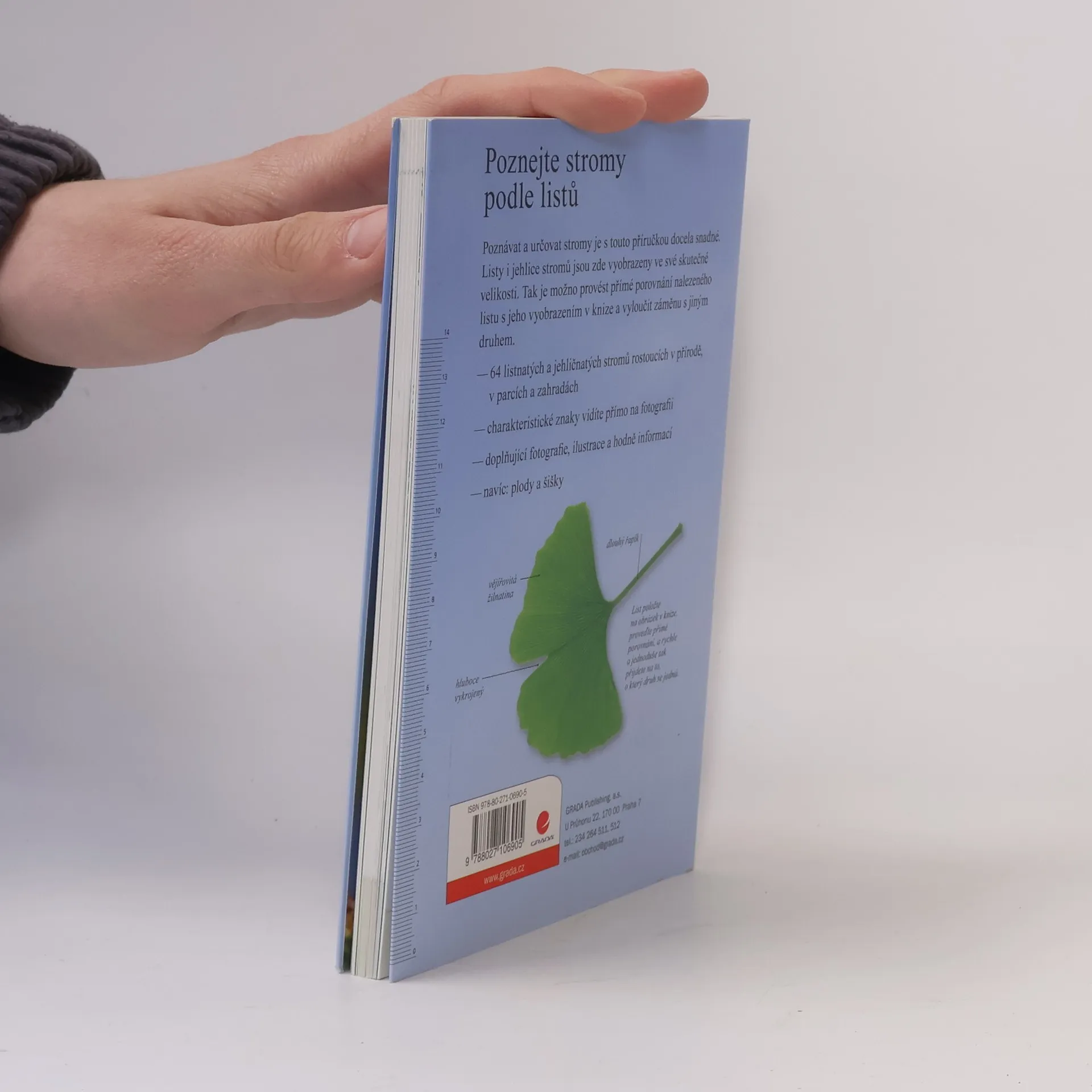 Poznávat a určovat stromy je s touto příručkou docela snadné. Listy i jehlice stromů jsou zde vyobrazeny ve skutečné velikosti, takže stačí list položit na obrázek v knize, porovnat, a rychle a jednoduše přijdete na to, o který druh se jedná. Celkem zde najdete 64 listnatých a jehličnatých stromů rostoucích v přírodě, ale i v parcích a zahradách. U každého stromu je fotografie listu (či jehlic), kresba tvaru koruny a potřebné informaci pro to, abyste strom mohli určit. Na klopách knihy jsou navíc podrobnosti o plodech a šiškách.