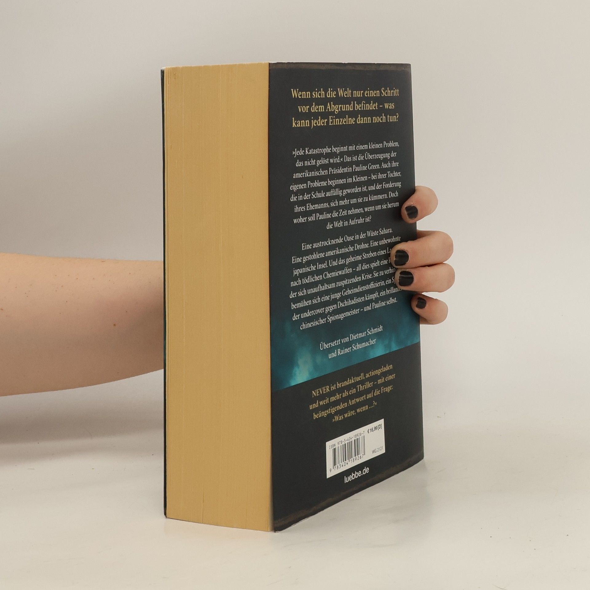Mehr als ein Thriller - Ken Folletts neuester, actiongeladener Roman führt tief in die Verstrickungen unserer globalisierten Welt und stellt die Frage »Was wäre, wenn ...?« In der Sahara verfolgen westliche Geheimdienstagenten mächtige Drogenschmuggler. Tamara aus den USA und ihr französischer Kollege Tab riskieren für ihre Liebe ihre Karriere und ihr Leben. In der Nähe macht sich die junge Witwe Kiah mit Hilfe von Schleusern auf den Weg nach Europa. Als sie sich gegen Übergriffe verteidigen muss, erhält sie unerwartete Hilfe von einem Mitreisenden, der jedoch nicht das ist, was er vorgibt. In China kämpft der Regierungsbeamte Chang Kai gegen kommunistische Hardliner und hat ehrgeizige Pläne. Er fürchtet, dass die Kriegstreiberei seiner Widersacher das Land und Nordkorea auf einen irreversiblen Weg führt. In den USA führt die erste Präsidentin Pauline Green souverän ihr Amt und setzt alles daran, einen unnötigen Krieg zu verhindern. Doch wenn aggressive Handlungen eskalieren und diplomatische Mittel versagen, stellt sich die Frage, wer das Unvermeidliche noch aufhalten kann. In diesem packenden Roman begegnen sich Heldinnen und Schurken, falsche Propheten und mutige Kämpfer. Follett fragt: Wenn die Welt am Abgrund steht, was kann jeder Einzelne tun? NEVER ist atemberaubend und ein Weckruf.