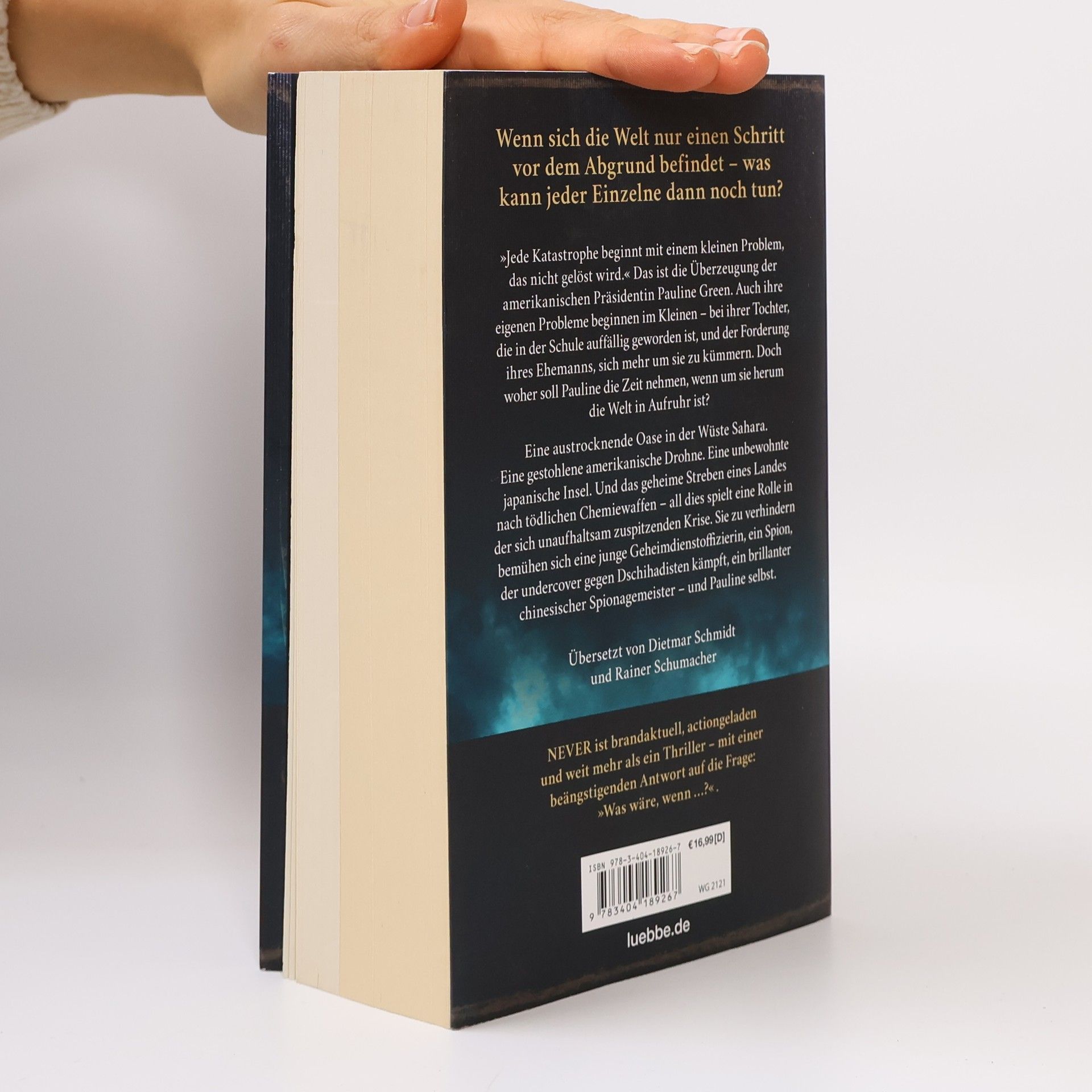 Mehr als ein Thriller - Ken Folletts neuester, actiongeladener Roman führt tief in die Verstrickungen unserer globalisierten Welt und stellt die Frage »Was wäre, wenn ...?« In der Sahara verfolgen westliche Geheimdienstagenten mächtige Drogenschmuggler. Tamara aus den USA und ihr französischer Kollege Tab riskieren für ihre Liebe ihre Karriere und ihr Leben. In der Nähe macht sich die junge Witwe Kiah mit Hilfe von Schleusern auf den Weg nach Europa. Als sie sich gegen Übergriffe verteidigen muss, erhält sie unerwartete Hilfe von einem Mitreisenden, der jedoch nicht das ist, was er vorgibt. In China kämpft der Regierungsbeamte Chang Kai gegen kommunistische Hardliner und hat ehrgeizige Pläne. Er fürchtet, dass die Kriegstreiberei seiner Widersacher das Land und Nordkorea auf einen irreversiblen Weg führt. In den USA führt die erste Präsidentin Pauline Green souverän ihr Amt und setzt alles daran, einen unnötigen Krieg zu verhindern. Doch wenn aggressive Handlungen eskalieren und diplomatische Mittel versagen, stellt sich die Frage, wer das Unvermeidliche noch aufhalten kann. In diesem packenden Roman begegnen sich Heldinnen und Schurken, falsche Propheten und mutige Kämpfer. Follett fragt: Wenn die Welt am Abgrund steht, was kann jeder Einzelne tun? NEVER ist atemberaubend und ein Weckruf.