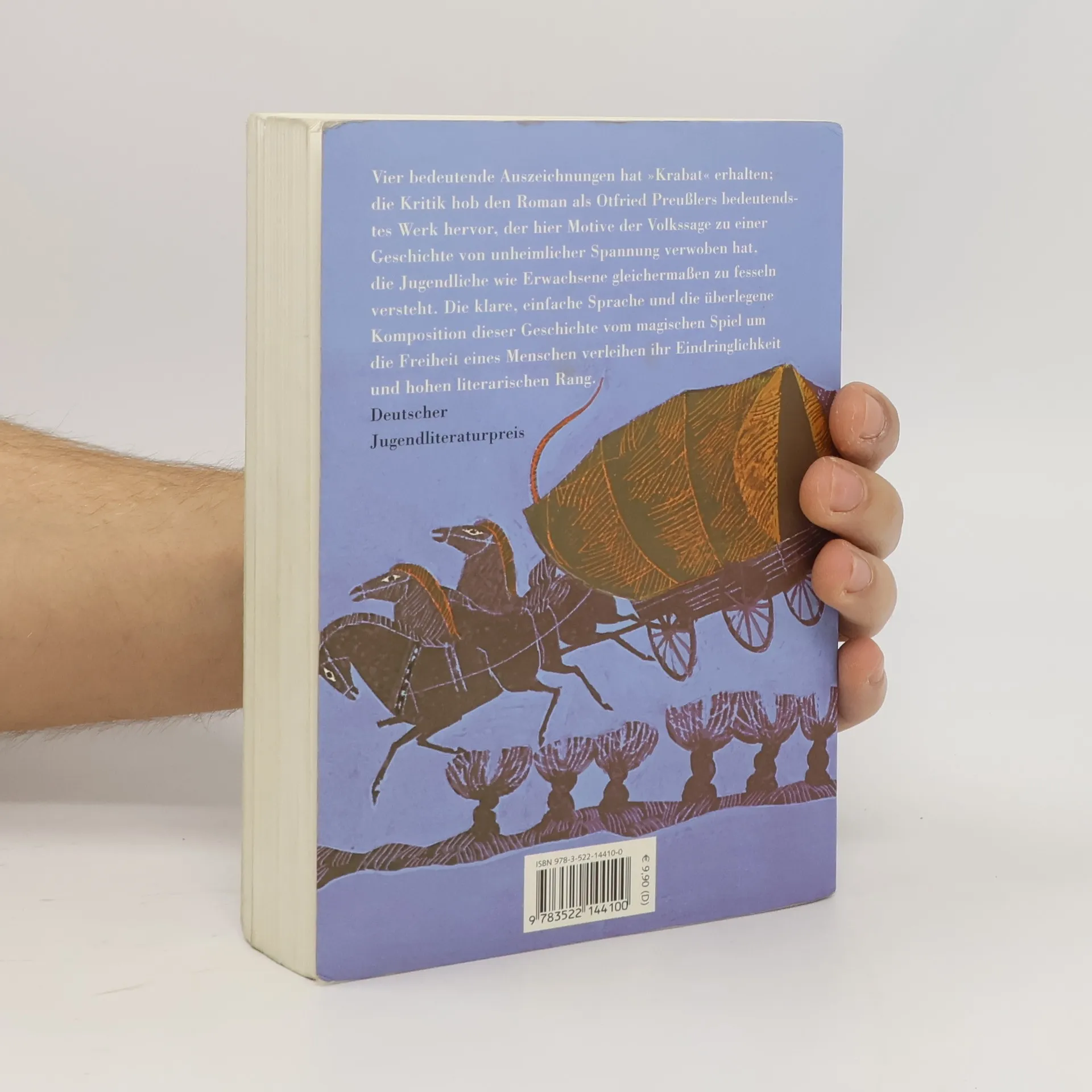 Drei Jahre verbringt Krabat beim teuflischen Meister in der Mühle im Koselbruch. Während seiner Lehrzeit als Müllerjunge lernt Krabat nicht nur das Müllern. Sein Meister ist ein böser Zauberer, aber durch die Liebe eines Mädchens kann Krabat sich und die anderen Müllerburschen aus den Fängen des Meisters retten und ihn unschädlich machen. Schulausgabe (kompletter Text) mit Zusatzinformationen zur Krabat-Sage, zur Entstehung des Buches und zum Autor. Ab 12 Jahren. Neuausgabe ab August 2009: kompletter Text ohne Zusatzinformationen: ISBN 978-3-522-20087-5.