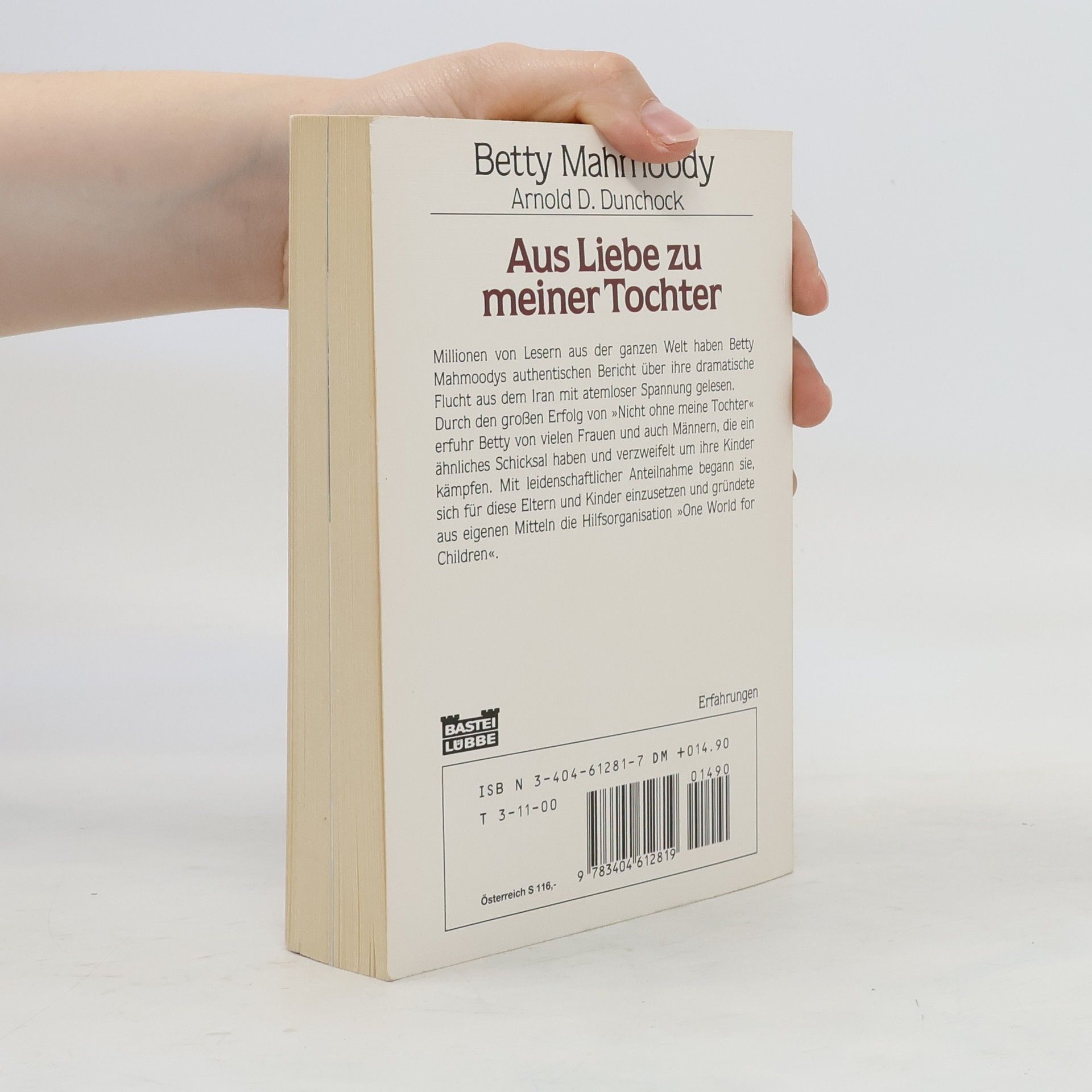 Millionen von Lesern aus der ganzen Welt haben Betty Mahmoodys authentischen Bericht über ihre dramatische Flucht aus dem Iran gelesen. Durch den großen Erfolg von Nicht ohne meine Tochter erfuhr Betty von vielen Frauen und auch Männern, die ein ähnliches Schicksal haben und verzweifelt um ihre Kinder kämpfen. Mit leidenschaflticher Anteilnahme begann sie, sich für diese Eltern und Kinder einzusetzen, und gründete aus eigenen Mitteln die Hilfsorganisation „One World for Children“.