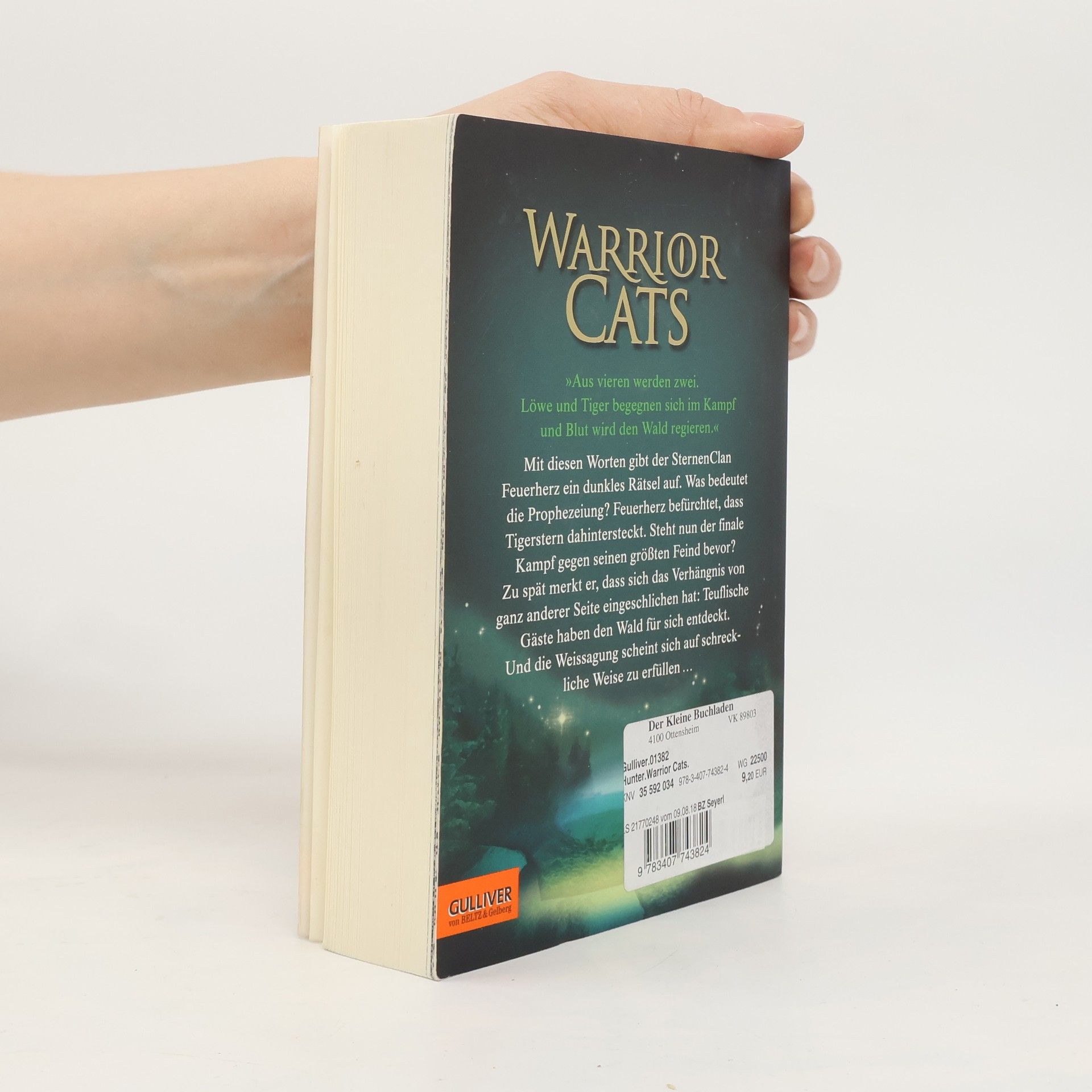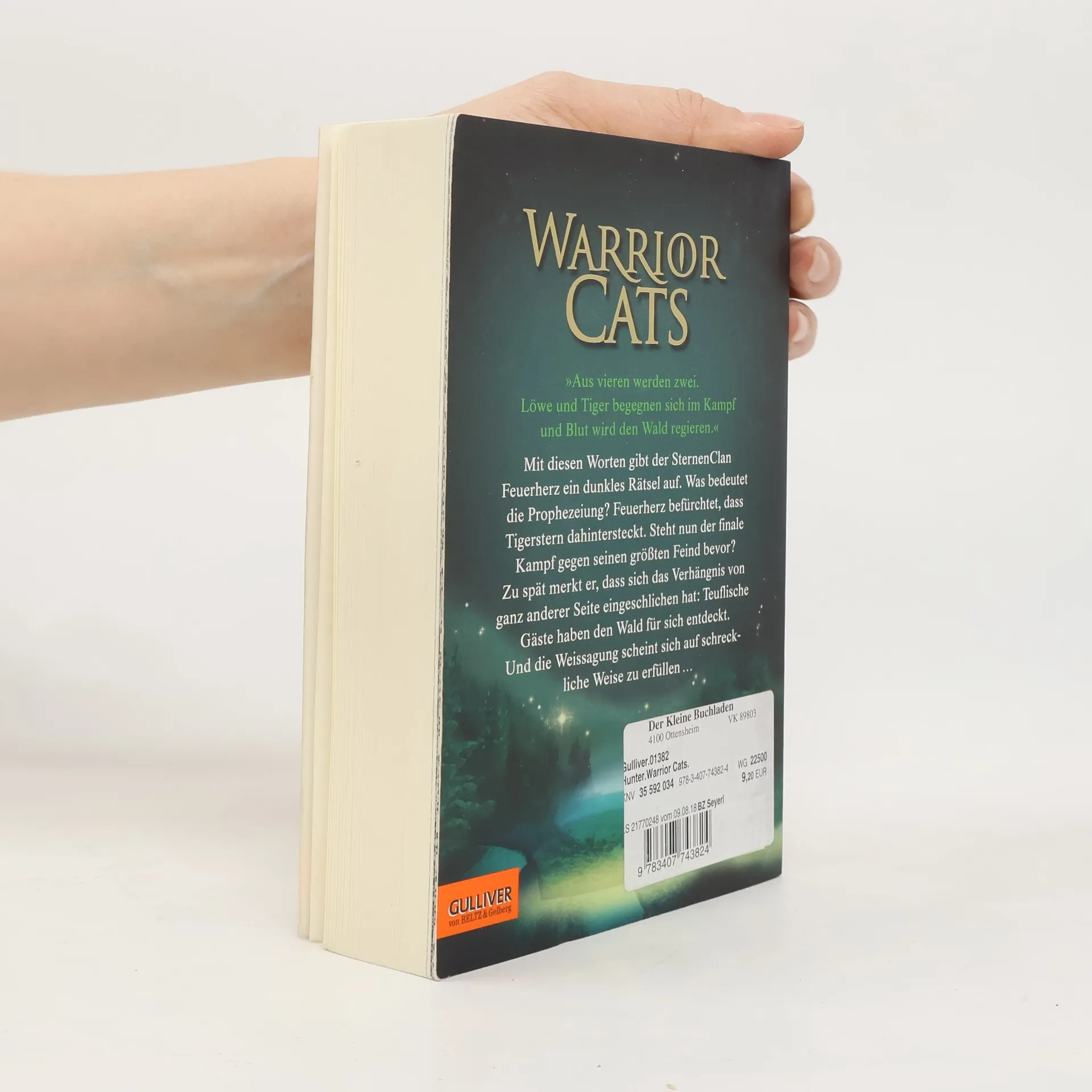 »Atmosphärisch sehr dicht, lässt der sechste Band um die Waldkatzen dem Leser kaum Zeit zum Luftholen.« Fränkische Nachrichten »Aus vieren werden zwei. Löwe und Tiger begegnen sich im Kampf und Blut wird den Wald regieren.« Mit diesen Worten gibt der SternenClan Feuerherz ein dunkles Rätsel auf. Was bedeutet die Prophezeiung? Feuerherz befürchtet, dass Tigerstern dahintersteckt. Steht nun der finale Kampf gegen seinen größten Feind bevor? Zu spät merkt er, dass sich das Verhängnis von ganz anderer Seite eingeschlichen hat: Teuflische Gäste haben den Wald für sich entdeckt. Und die Weissagung scheint sich auf schreckliche Weise zu erfüllen …