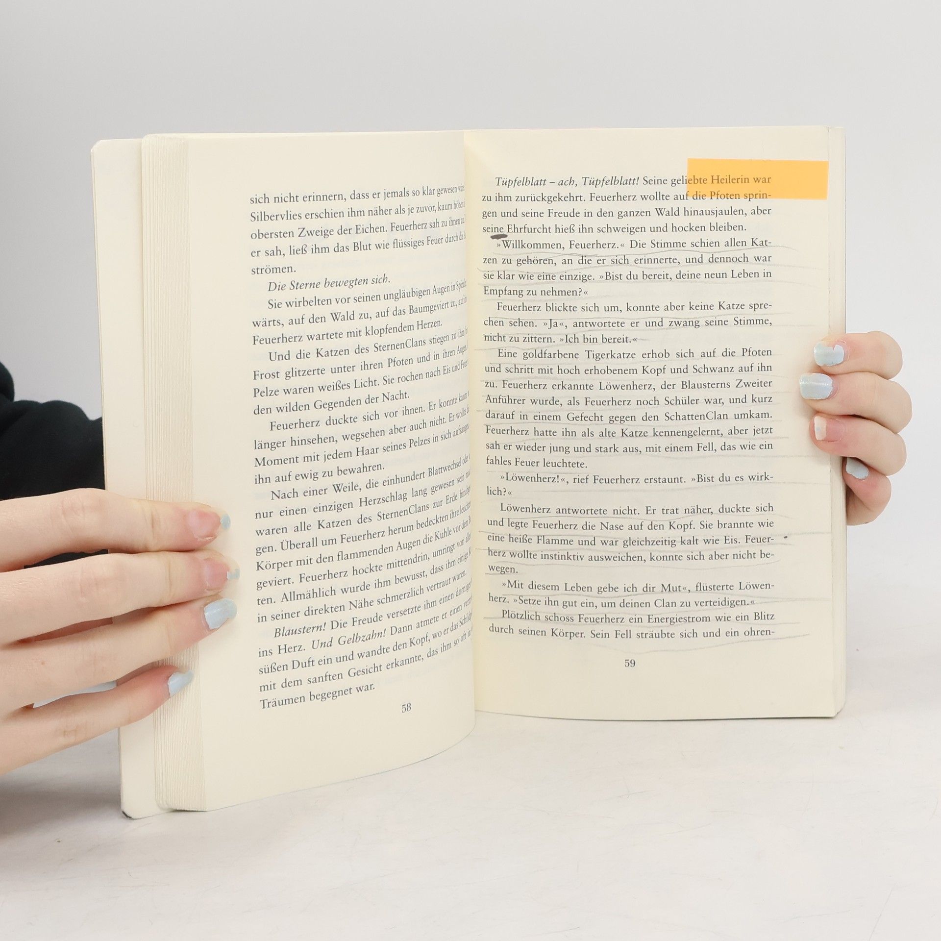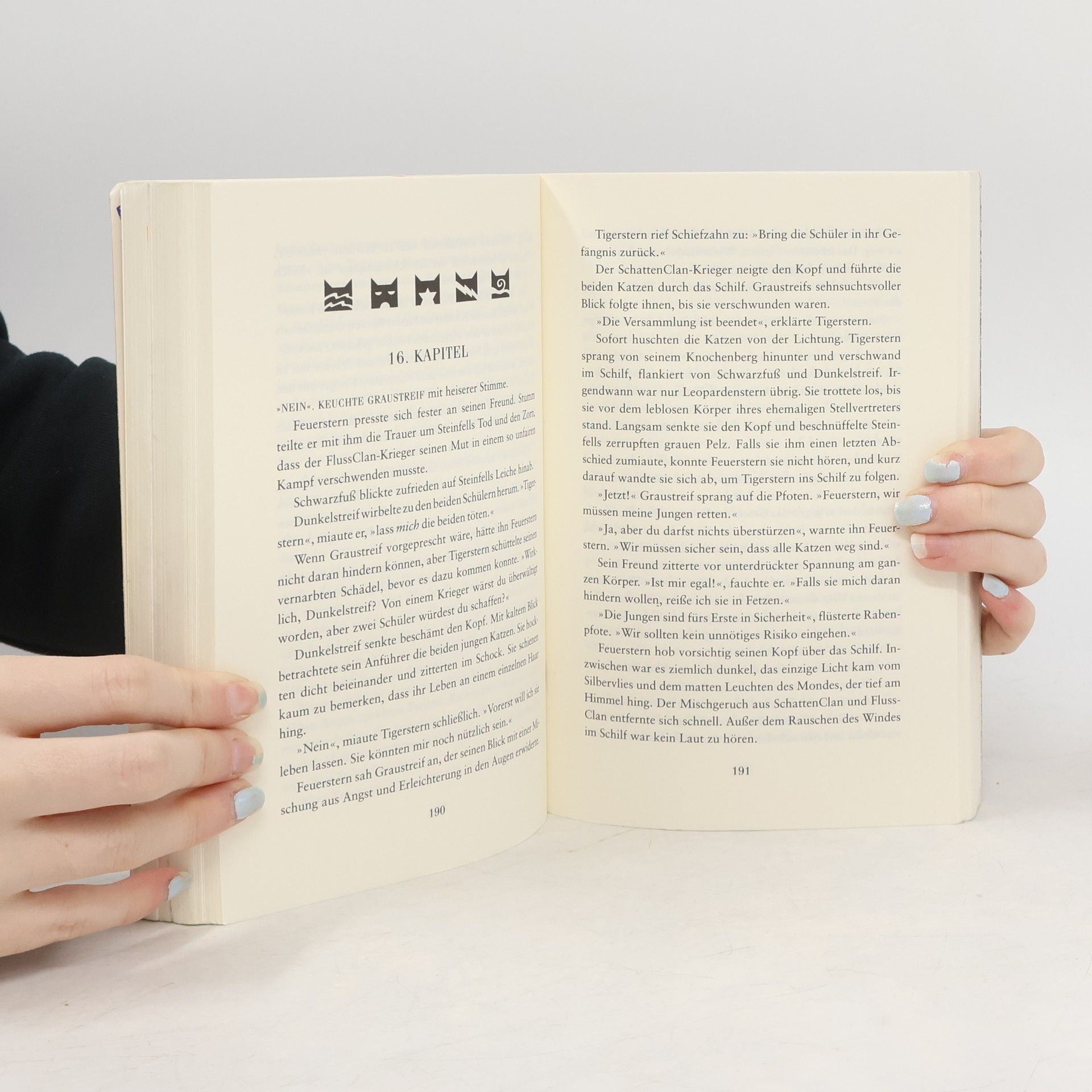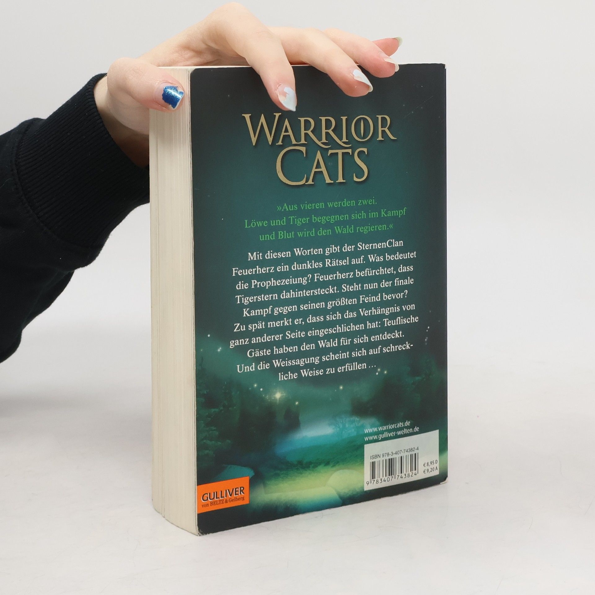 »Atmosphärisch sehr dicht, lässt der sechste Band um die Waldkatzen dem Leser kaum Zeit zum Luftholen.« Fränkische Nachrichten »Aus vieren werden zwei. Löwe und Tiger begegnen sich im Kampf und Blut wird den Wald regieren.« Mit diesen Worten gibt der SternenClan Feuerherz ein dunkles Rätsel auf. Was bedeutet die Prophezeiung? Feuerherz befürchtet, dass Tigerstern dahintersteckt. Steht nun der finale Kampf gegen seinen größten Feind bevor? Zu spät merkt er, dass sich das Verhängnis von ganz anderer Seite eingeschlichen hat: Teuflische Gäste haben den Wald für sich entdeckt. Und die Weissagung scheint sich auf schreckliche Weise zu erfüllen …