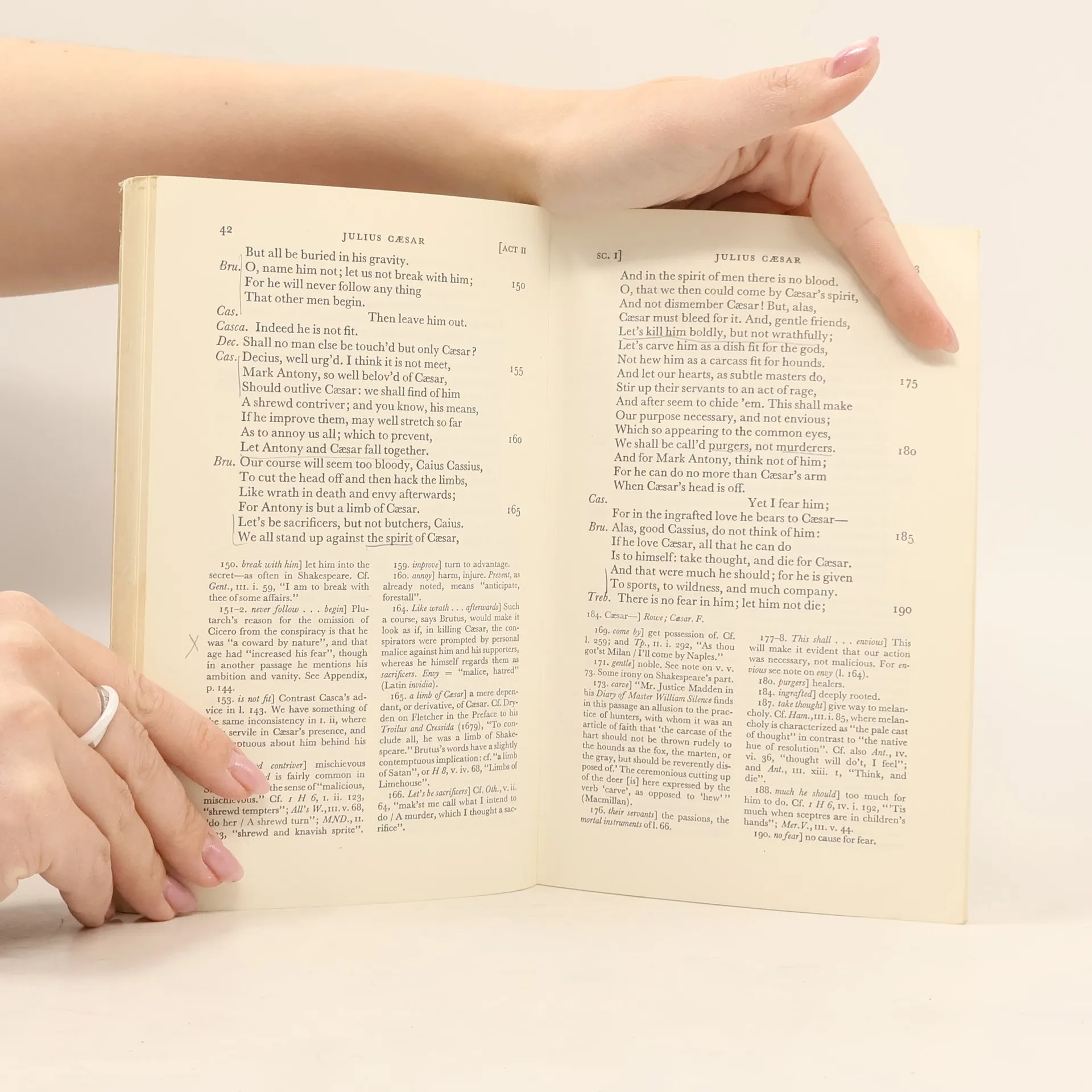 Notes on the story, language, construction, and background accompany the text of the play about the conspiracy to assassinate Caesar.