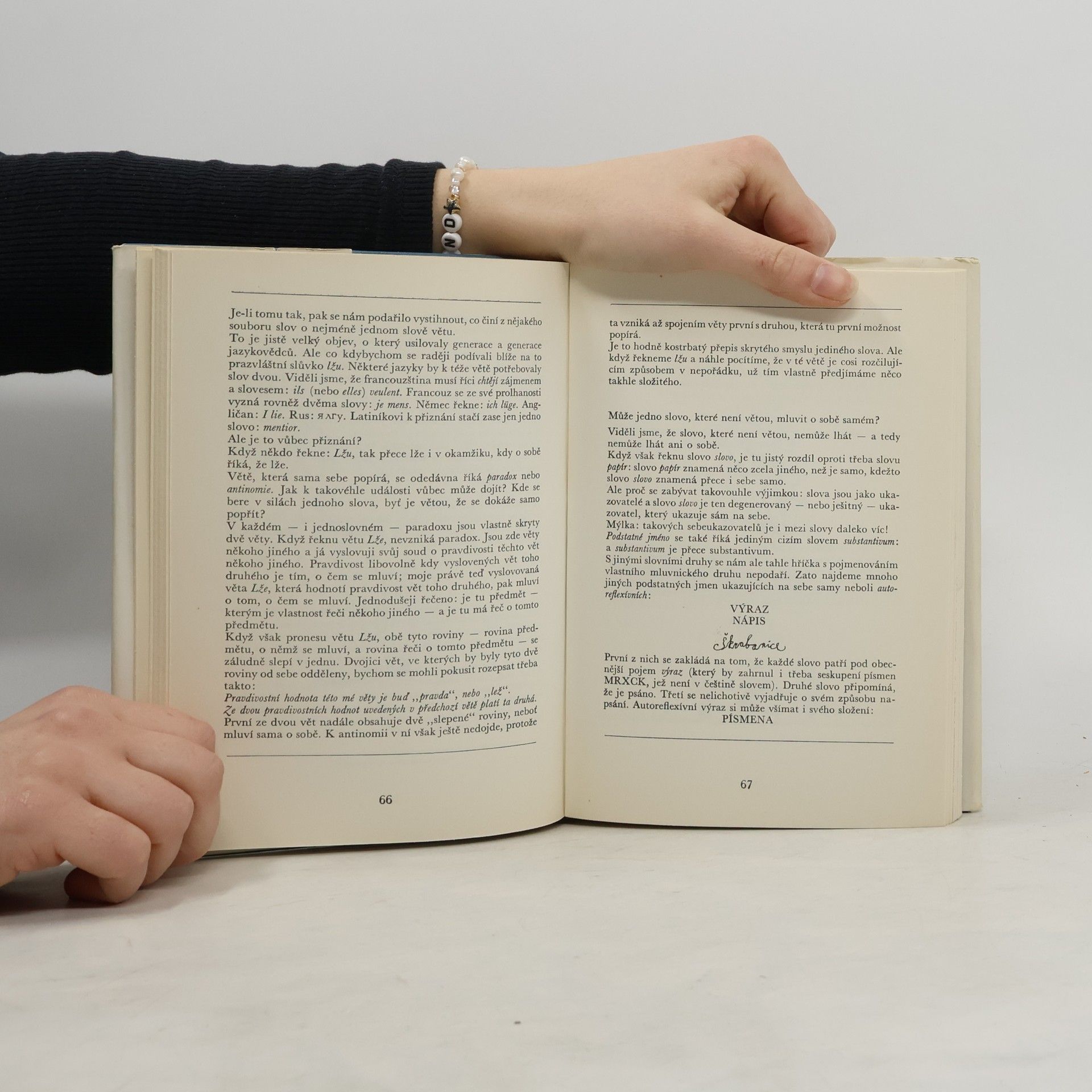 Kniha pojednává o naší řeči, jazyku a písmu. Nachází se v ní různé hry, zajímavé experimenty a testy na paměť, zručnost a důvtip.