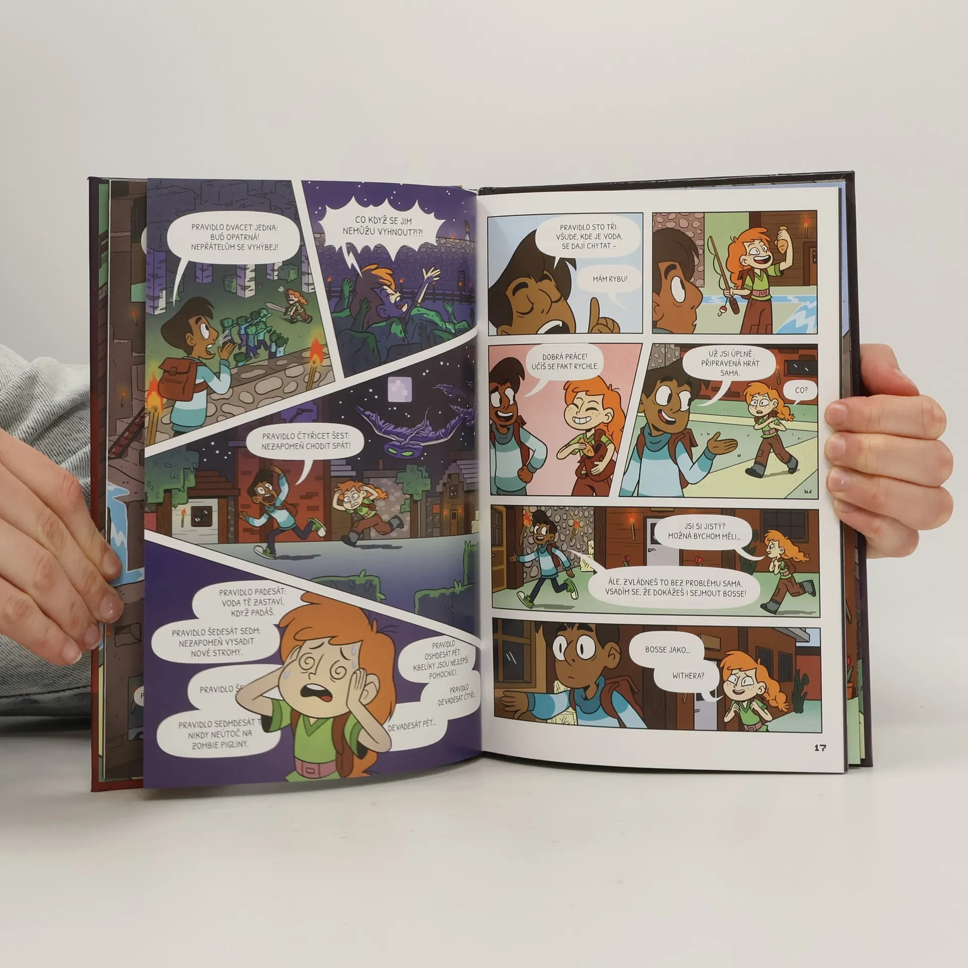 Komiksový příběh odehrávající se ve světě Minecraftu. Do Minecraftu přichází Sára, nováček bez jakýchkoliv zkušeností, zato nabitý nezdolnou energií. Doufá, že ostřílený hráč Hektor jí bude průvodcem. Jenže Hektor je tak trochu bručoun a samotář a nemá ve zvyku hrát v týmu, natož se začátečníkem. Ale pod vlivem Sářina nadšení nakonec změní názor a stanou se z nich skvělí parťáci a hlavně přátelé. Nakladatelská anotace. Kráceno.