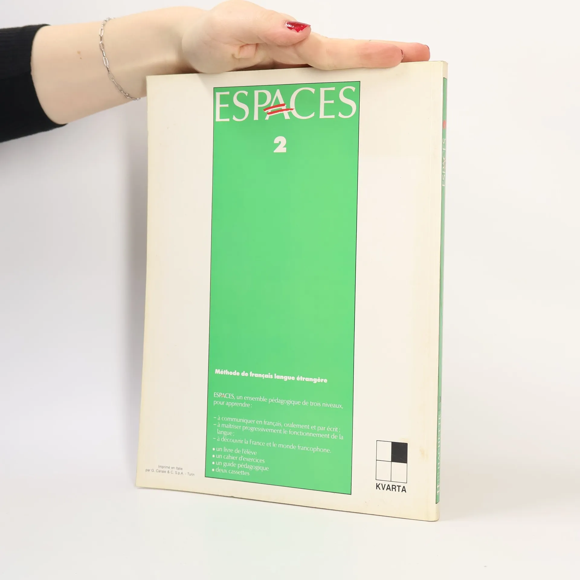 Espaces, un ensemble pédagogique de trois niveaux, pour apprendre : - à communiquer en français, oralement et par écrit ; - à maîtriser progressivement le fonctionnement de la langue ; - à découvrir la France et le monde francopone. . un livre de l'élève . un cahier d'exercices . un guide pédagogique . deux cassettes.