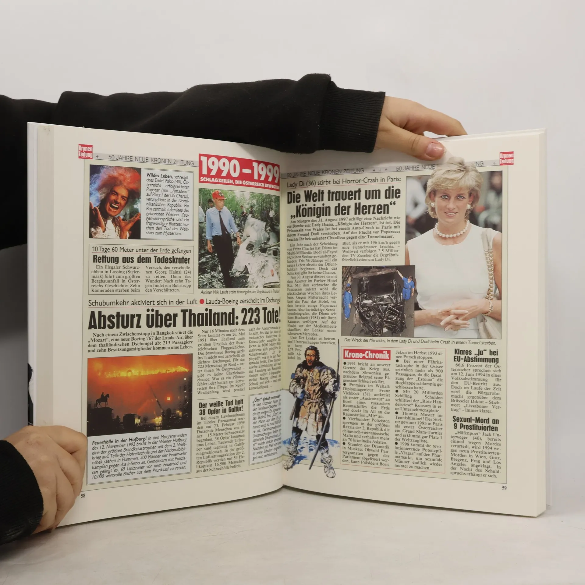 Die Wirtschaftskrise ist das Thema des Jahres 2009. Inmitten dieser globalen Sorge gilt der neue US-Präsident Barack Obama als der Hoffungsträger für die Welt. In Österreich wiederum sorgt der Jahrhundertprozess um den Inzest-Vater Josef Fritzl für weltweites Medieninteresse. Und natürlich bringt das neue 'Krone'-Schlagzeilenbuch auch alle amüsanten und pikanten 'Adabei'-Geschichten – von 'Mausi' Lugners notpeinlicher Schatzsuche im Dschungelcamp bis zum groß angekündigten Come-back des Popkönigs Michael Jackson. Alles in allem 150 spannende Seiten Zeitgeschichte mit den besten Fotos des Jahres.