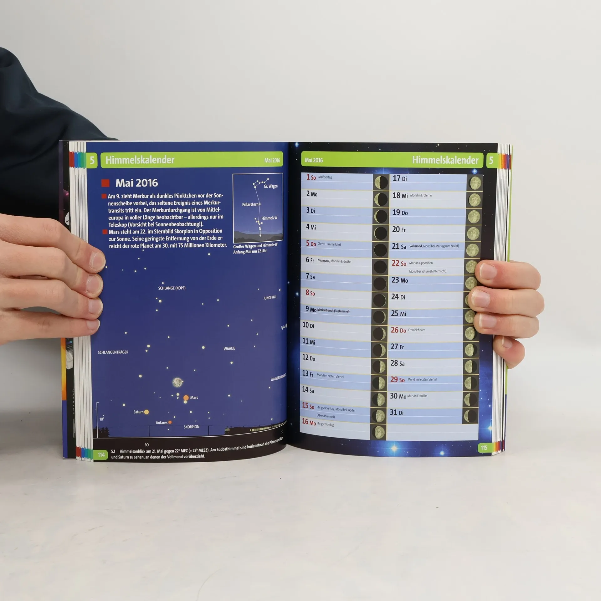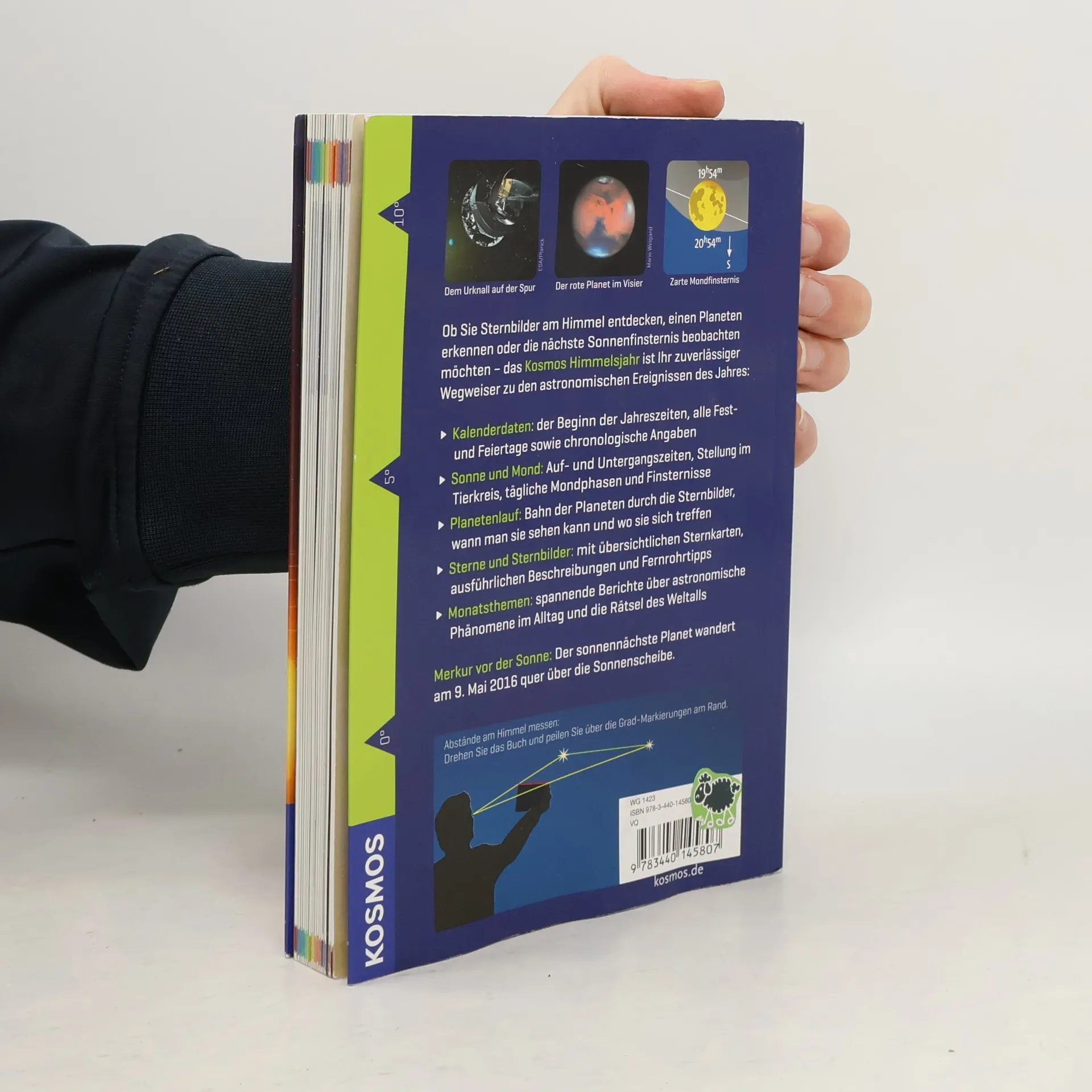 Aktuelle Himmelsschauspiele, zuverlässige kalendarische Angaben und die beliebten Monatsthemen: Das Kosmos Himmelsjahr ist ein Multitalent. So erfährt man zum Beispiel, wann die Sonne aufgeht, welche Mondphase gerade herrscht und welche Planeten zu finden sind. Die Monatsthemen erläutern astronomische Phänomene und gehen auch auf aktuell diskutierte Fragen ein.