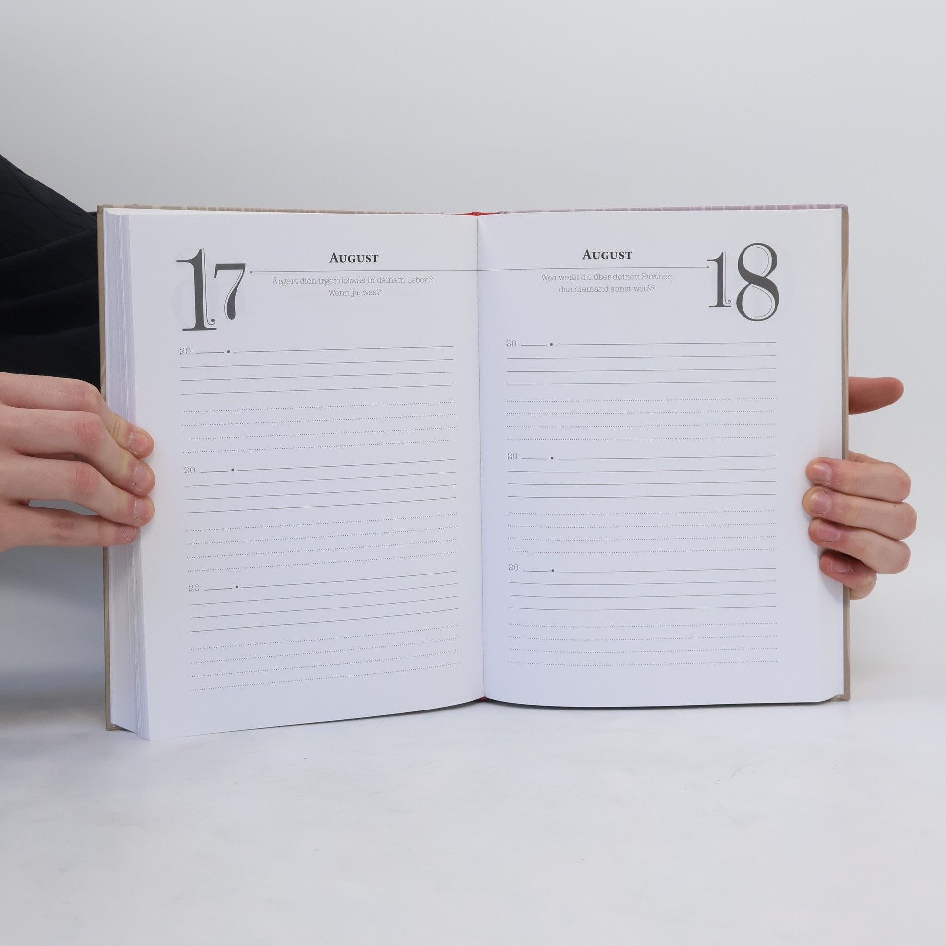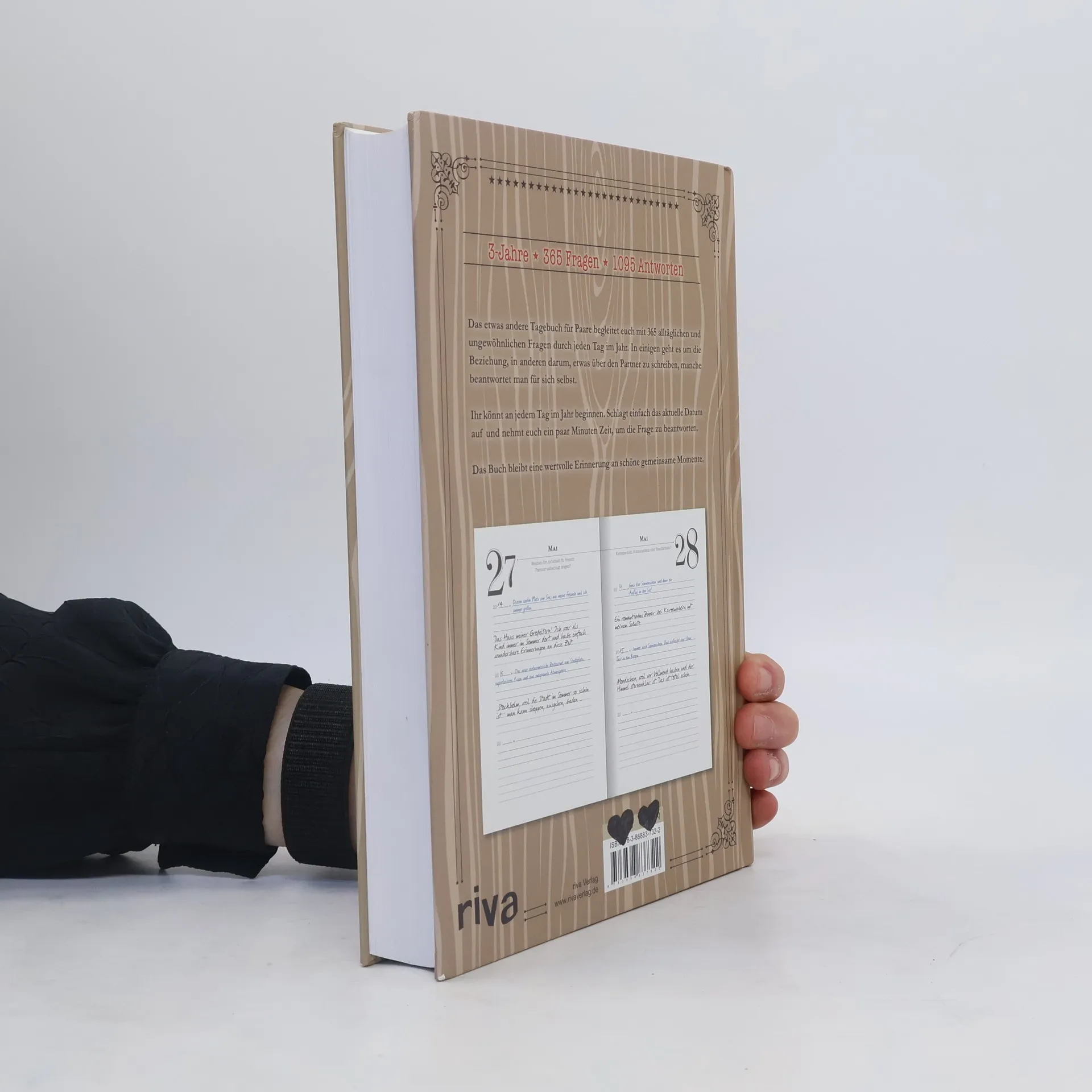 Das etwas andere Tagebuch für Paare! 365 alltägliche und ungewöhnliche Fragen begleiten durch jeden Tag im Jahr und ermöglichen es Paaren, sich selbst über drei Jahre hinweg zu beobachten und ihre Entwicklung nachzuverfolgen. In einigen Fragen geht es um die Beziehung (»Wohin würdest du gerne mit deinem Partner reisen?«), in anderen darum, etwas über den anderen zu schreiben (»Wie klingt das Lachen deines Partners?«), manche Fragen beantwortet man für sich selbst (»Was hat heute für dich höchste Priorität?«). Man kann an jedem Tag im Jahr beginnen: Einfach das aktuelle Datum aufschlagen und sich ein paar Minuten Zeit nehmen, um die Frage der betreffenden Seite zu beantworten. Ist ein Jahr vergangen, startet man die nächste Runde – auf jeder Seite ist Platz für zweimal drei Antworten. Das Buch bleibt eine wertvolle Erinnerung an schöne gemeinsame Momente.