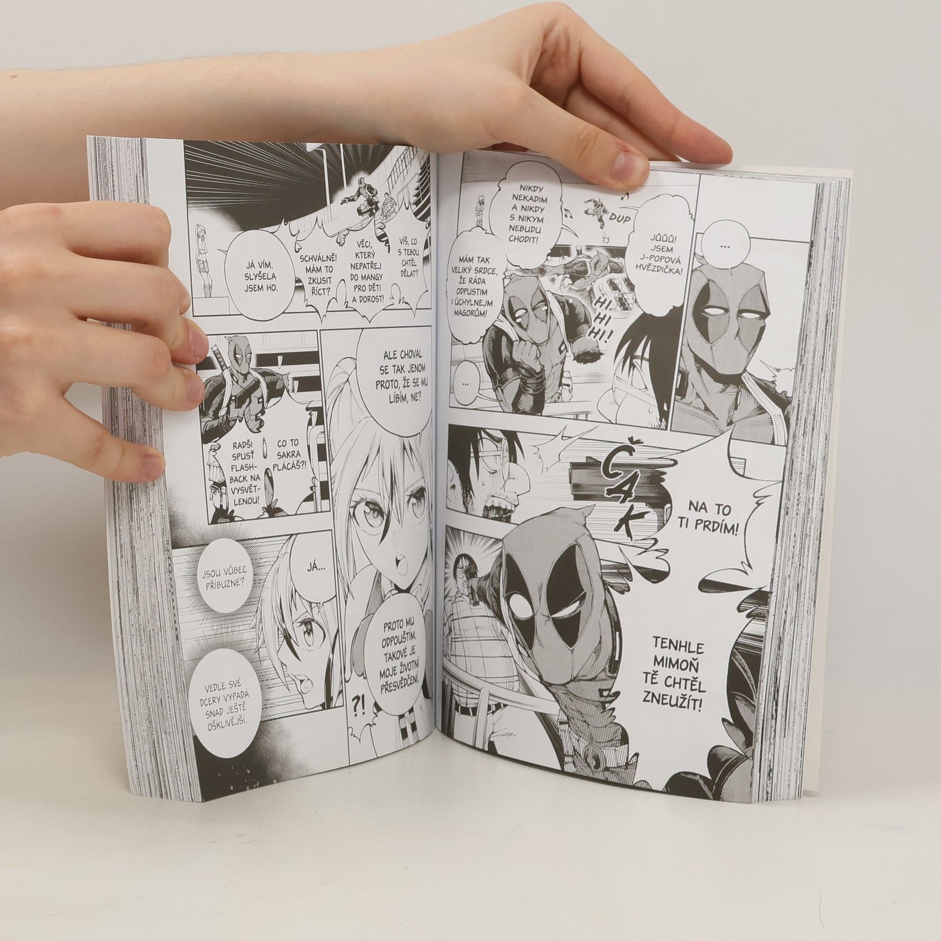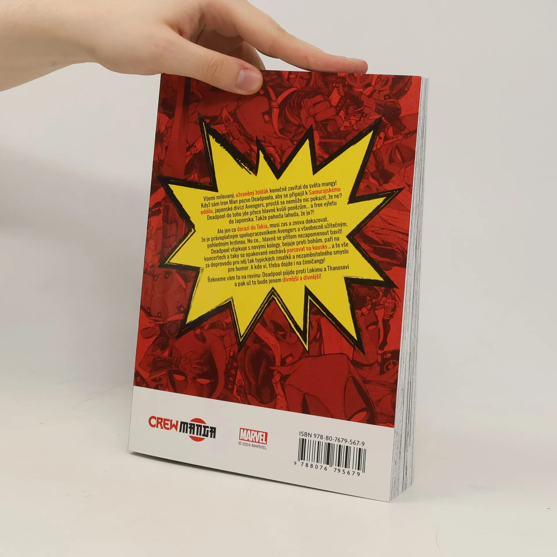 Všemi milovaný, užvaněný žoldák konečně zavítal do mangy! Když sám Iron Man pozve Deadpoola, aby se připojil k Samurajskému oddílu, japonské divizi Avengers, prostě se nemůže nic pokazit. Deadpool do toho jde přece hlavně kvůli penězům... a výletu do Japonska. Bude to v pohodě, že jo? Jen co dorazí do Tokia, hrnou se na něj příležitosti dokázat, že je právoplatný spolupracovník Avengers a všeobecně užitečný a pohledný hrdina. Ale hlavně se nezapomíná bavit! Vtipkuje s novými kolegy, bojuje proti bohům, paří na koncertech a taky se opakovaně nechává porcovat na kousky... to vše v doprovodu nezaměnitelných zmatků a jemu vlastnímu smyslu pro humor. A kdoví, třeba taky zkusí uvařit čimičangy! Řekneme vám to prostě na rovinu: Deadpool půjde proti Lokimu a Thanosovi a pak už to bude jenom divnější a divnější!