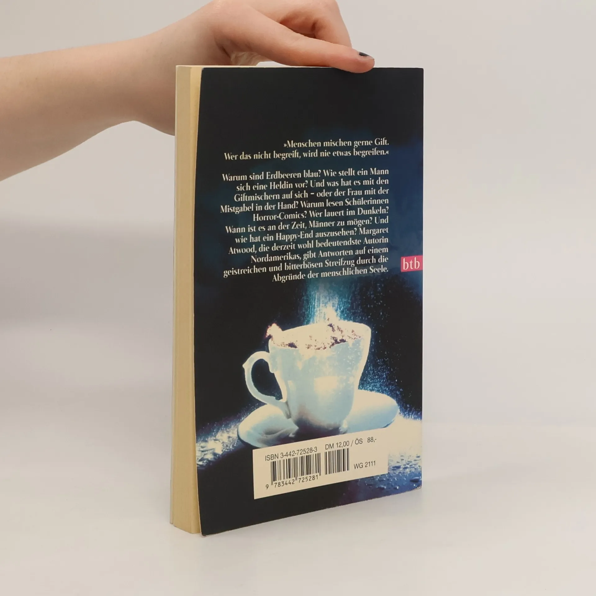"Menschen mischen gerne Gift. Wer das nicht begreift, wird nie etwas begreifen." Warum sind Erdbeeren blau? Wie stellt ein Mann sich eine Heldin vor? Und was hat es mit den Giftmischern auf sich - oder der Frau mit der Mistgabel in der Hand? Warum lesen Schülerinnen Horror-Comics? Wer lauert im Dunkeln? Wann ist es an der Zeit, Männer zu mögen? Und wie hat ein Happy-End auszusehen? Margaret Atwood, die derzeit wohl bedeutendste Autorin Nordamerikas, gibt Antworten auf einem geistreichen und bitterbösen Streifzug durch die Abgründe der menschlichen Seele.