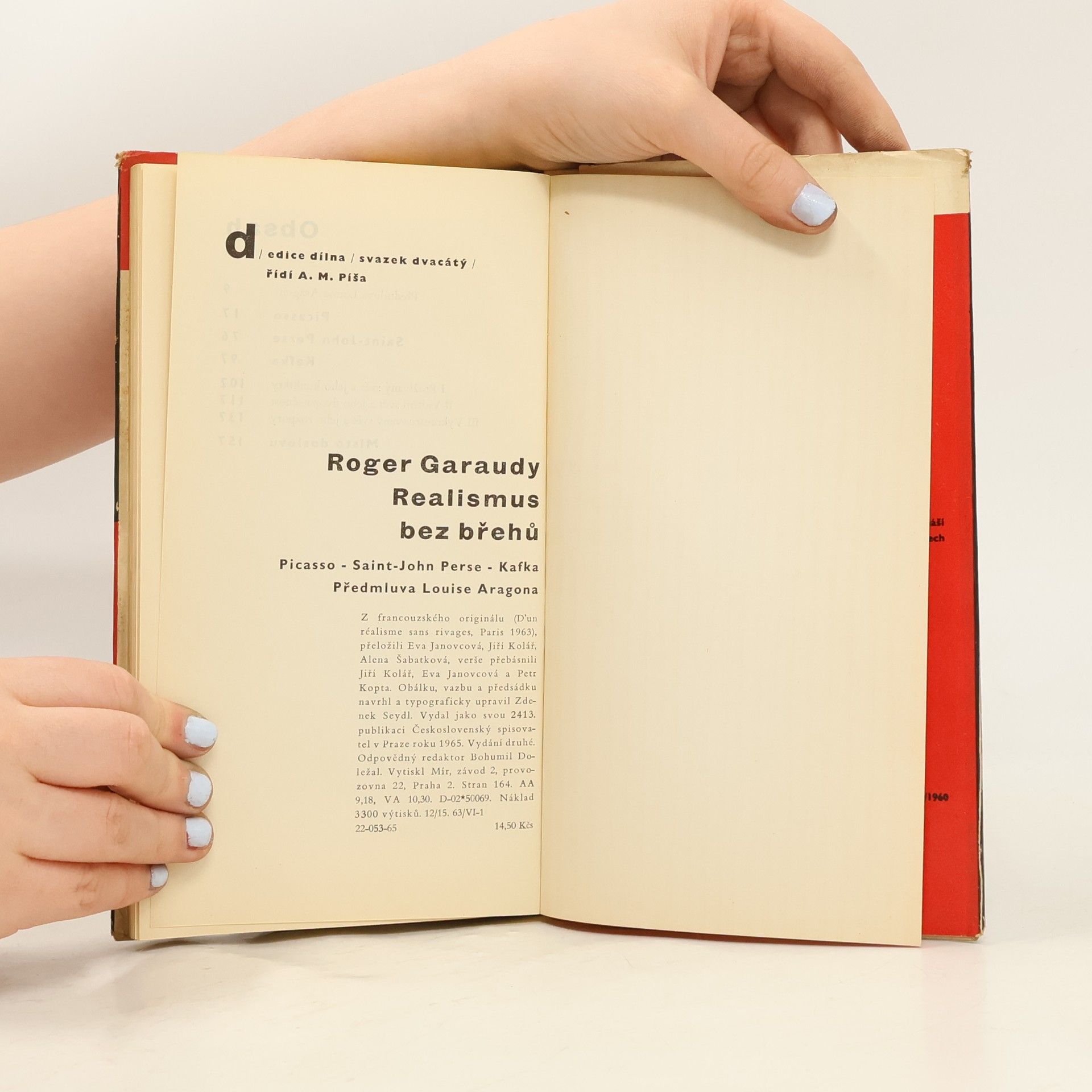 Tři eseje o třech význačných umělcích 20. století (Picasso, Saint-John Perse, Kafka). Autor, známý marxistický literární kritik, odhaluje jejich inspirační zdroje a společenské skutečnosti, podává rozbor jejich díla a osvětluje rysy moderního umění. Závěrem říká, že "neexistuje umění, které by nebylo realistické ...", že "každé autentické umělecké dílo vyjadřuje určitou formu přítomnosti člověka".