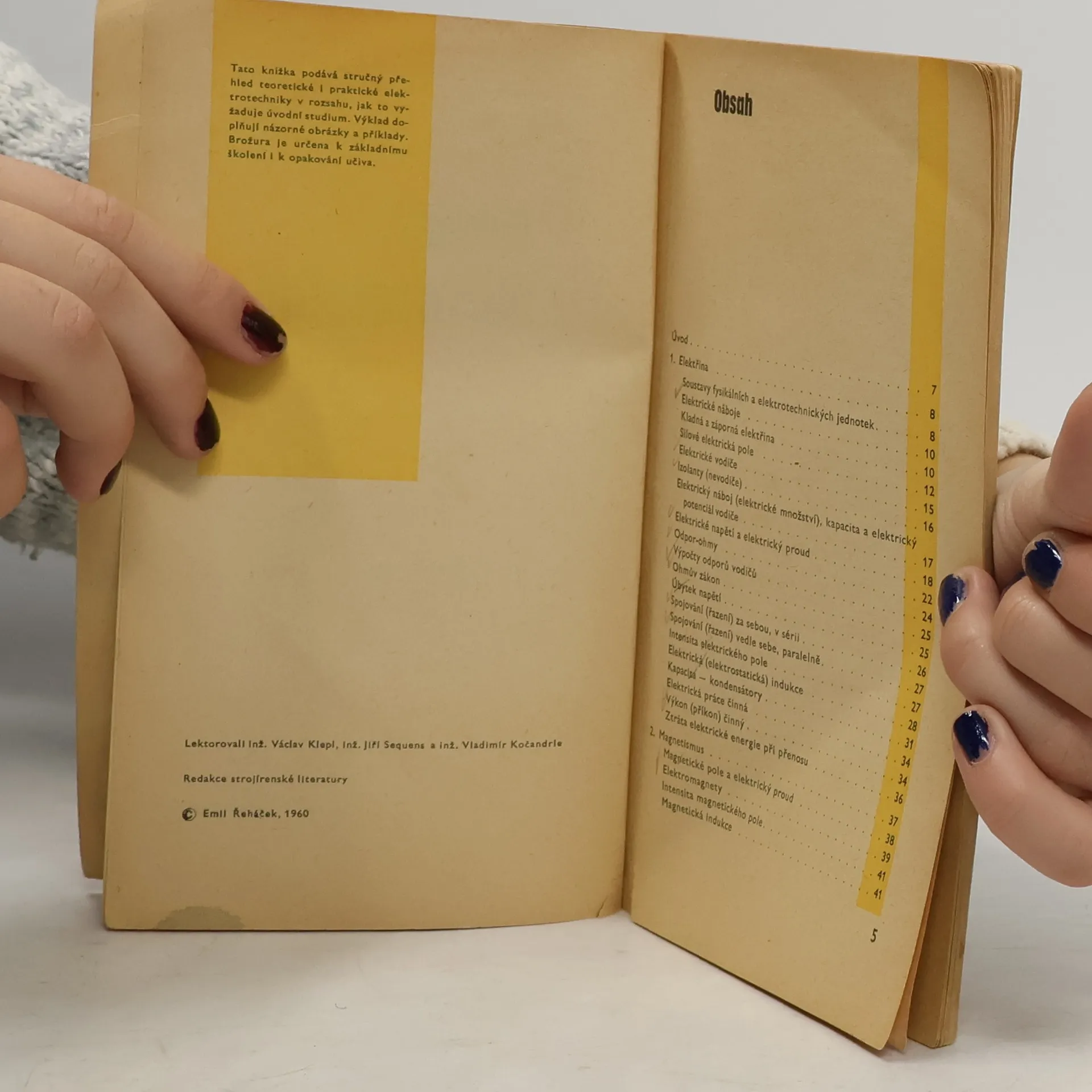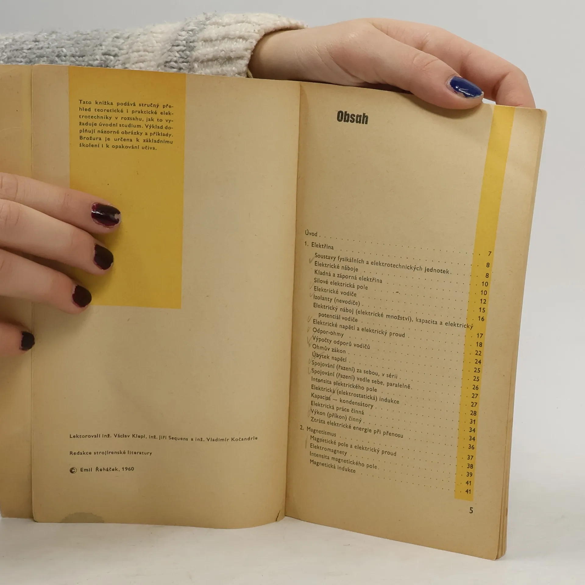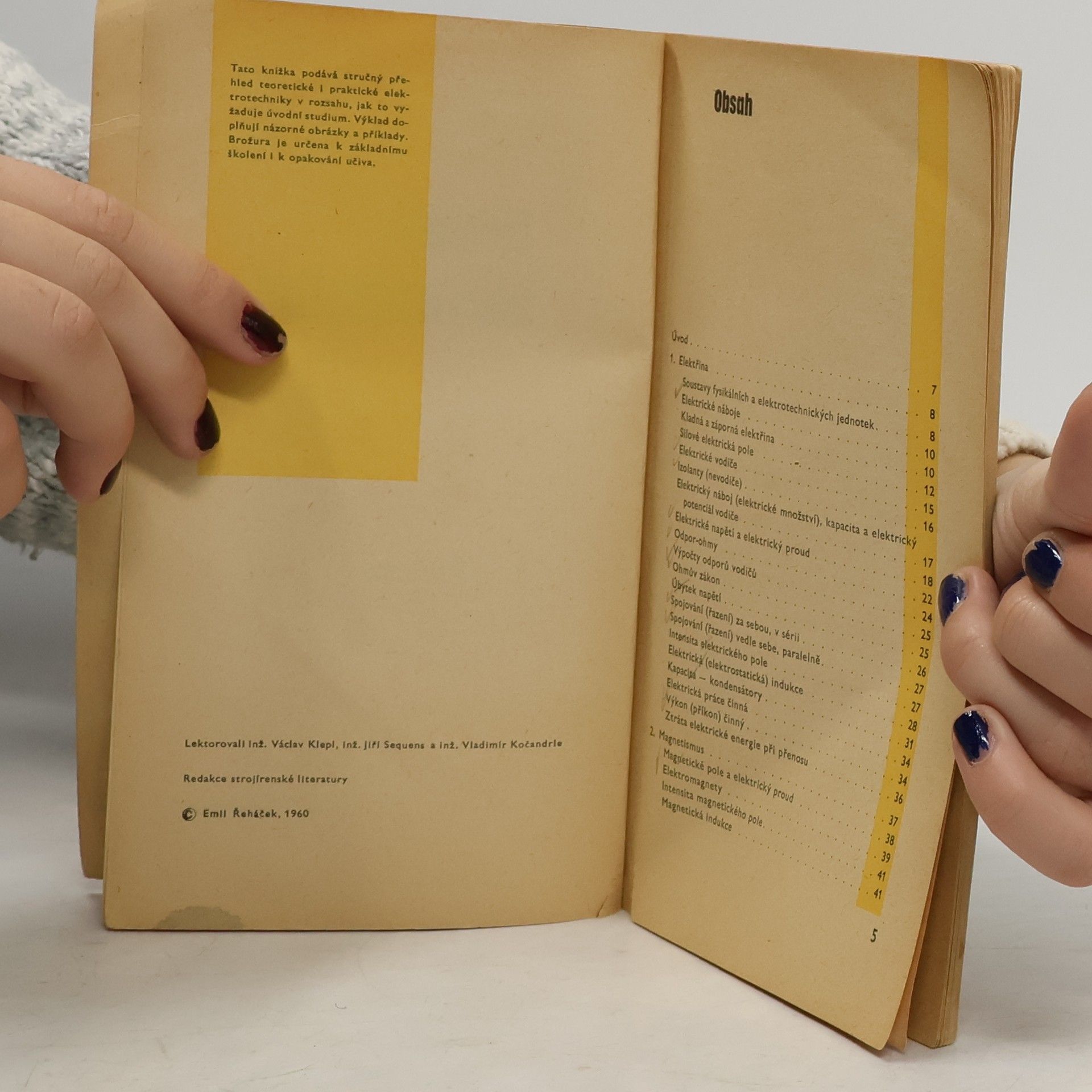 Stručný přehled elektrotechniky pro praxi a pomůcka k opakování učiva. Praktická studijní pomůcka srozumitelně probírá a vysvětluje podstatu nejrůznějších jevů z elektrotechnické praxe. Vykládá i složitější pojmy a seznamuje i s novými technickými výrazy. Určeno pro dělníky, učně a studenty. 1. vydání.