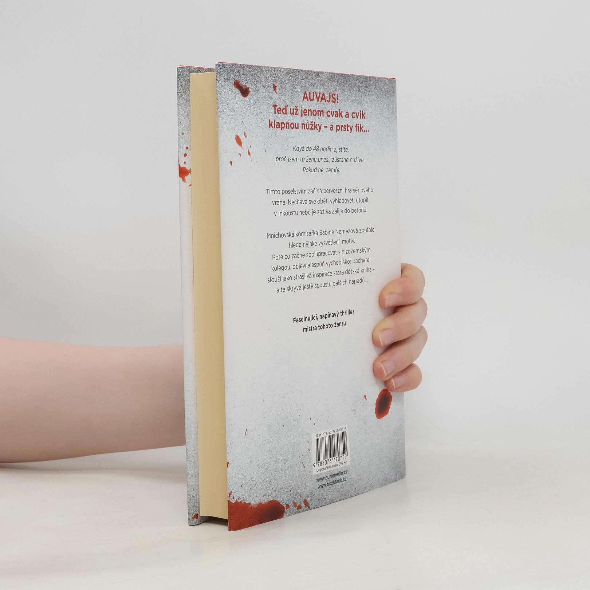 Pokud během 48 hodin zjistíte, proč jsem tu ženu unesl, zůstane naživu. Pokud ne, zemře. Tímto poselstvím začíná perverzní hra sériového vraha. Nechává své oběti vyhladovět, utopit v inkoustu nebo je zaživa zalije do betonu. Mnichovská komisařka Sabine Nemezová hledá nějaké vysvětlení, motiv. Poté co začne spolupracovat s nizozemským kolegou, objeví alespoň východisko: pachateli slouží jako strašlivá inspirace stará dětská kniha – a ta skrývá ještě spoustu dalších nápadů...