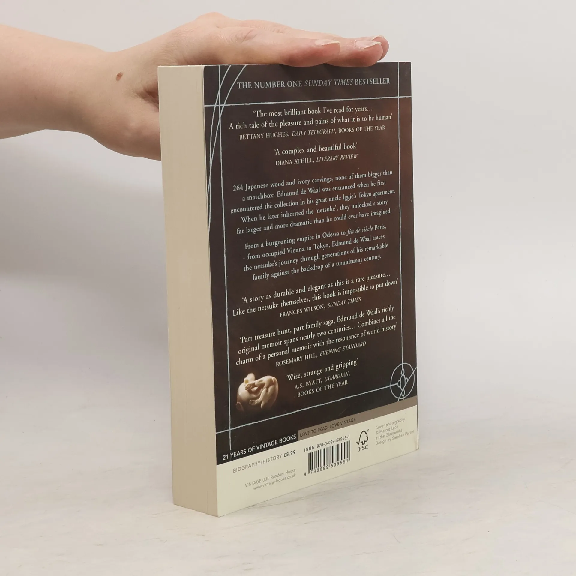 THE NUMBER ONE SUNDAY TIMES BESTSELLER WINNER OF THE 2010 COSTA BIOGRAPHY AWARD 264 wood and ivory carvings, none of them bigger than a matchbox: Edmund de Waal was entranced when he first encountered the collection in his great uncle Iggie's Tokyo apartment. When he later inherited the 'netsuke', they unlocked a story far larger and more dramatic than he could ever have imagined. From a burgeoning empire in Odessa to fin de siecle Paris, from occupied Vienna to Tokyo, Edmund de Waal traces the netsuke's journey through generations of his remarkable family against the backdrop of a tumultuous century. 'You have in your hands a masterpiece' Frances Wilson, Sunday Times 'The most brilliant book I've read for years... A rich tale of the pleasure and pains of what it is to be human' Bettany Hughes, Daily Telegraph, Books of the Year 'A complex and beautiful book' Diana Athill