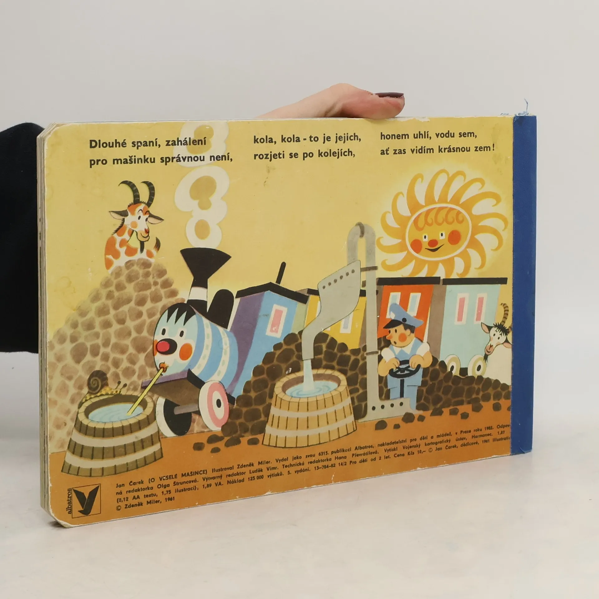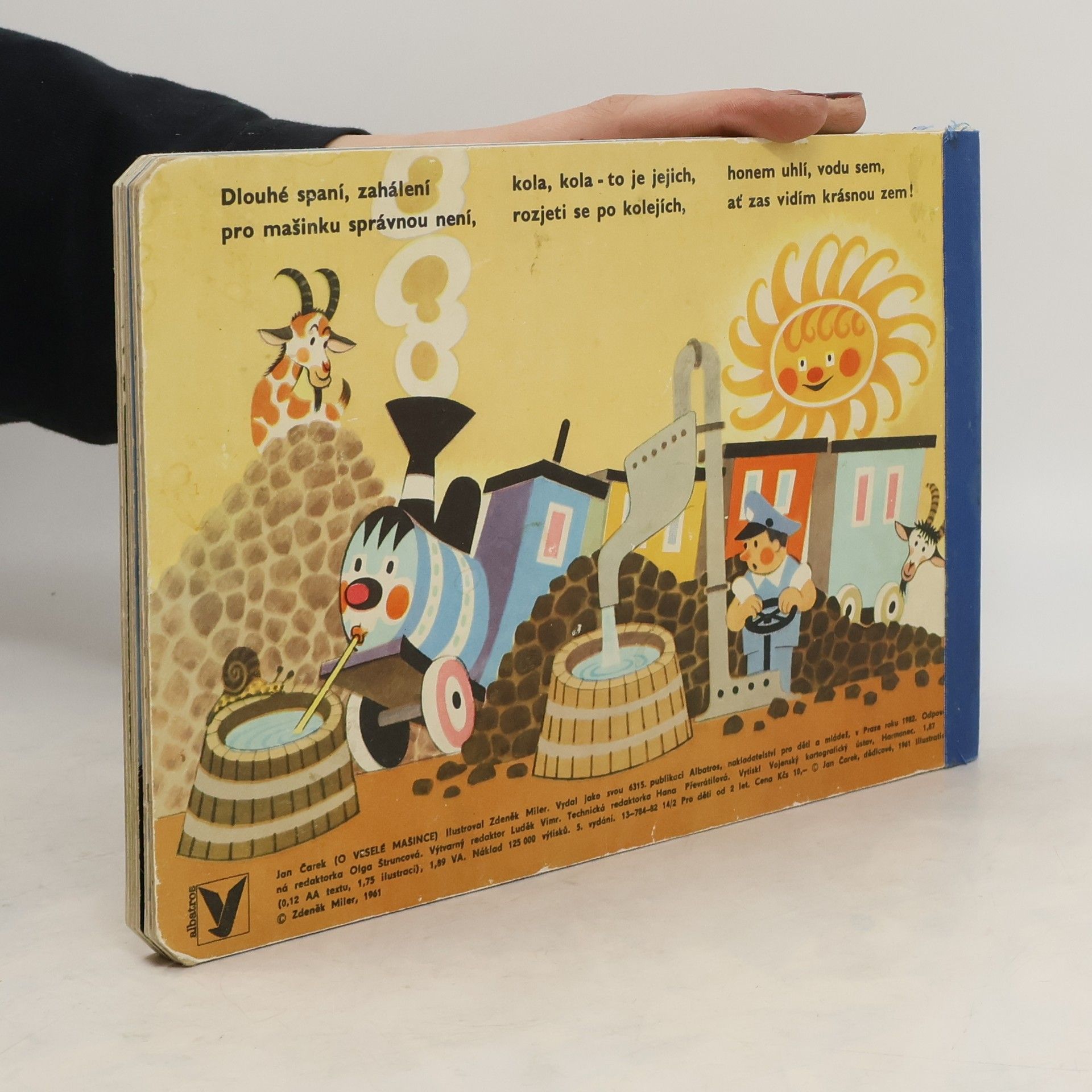 Oblíbené leporelo s verši, klasika české poezie pro děti. Veselá mašinka provází malé čtenáře po nádražích, vypravuje o průvodčích a strojvedoucím, o semaforu a výhybkách, o kolejnicích a železném mostu i o zaslouženém odpočinku po dlouhé cestě. Pro děti od dvou let.