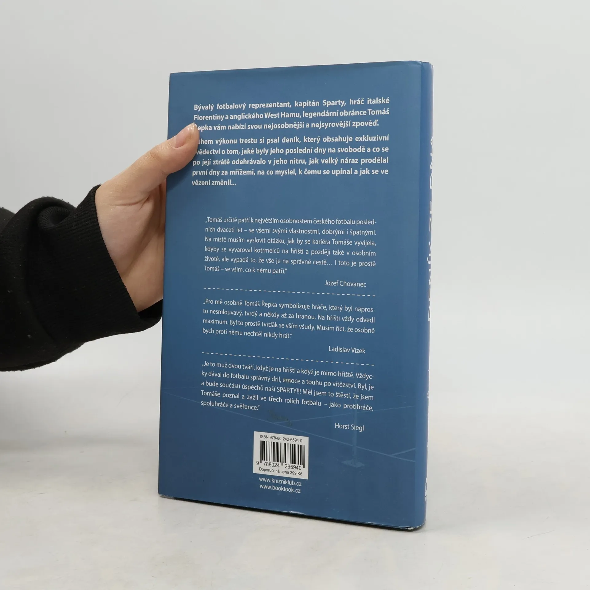 Bývalý fotbalový reprezentant, kapitán Sparty, hráč italské Fiorentiny a anglického West Hamu, legendární obránce Tomáš Řepka vydává svou nejosobnější zpověď. Během výkonu trestu si psal deník, který obsahuje exkluzivní svědectví o tom, jaké byly jeho poslední dny na svobodě a co se po její ztrátě odehrávalo v jeho nitru, jak velký náraz prodělal první dny za mřížemi, na co myslel, k čemu se upínal a jak se ve vězení změnil… V připravované knize se dočtete o jeho každodenní rutině, o tom, jak si zvykal na vězeňskou stravu, jak musel přijmout omezení dosavadních hygienických zvyklostí, jak na něj reagovalo jeho nové okolí, jak se začlenil do pevně daných pravidel, do řádu věznice, co mu nejvíc chybělo a co mu dávalo naději… Řepkův deník v knižní podobě doplní i exkluzivní fotografie a zpovědi jeho nejbližších i fotbalových legend, které stály při něm.