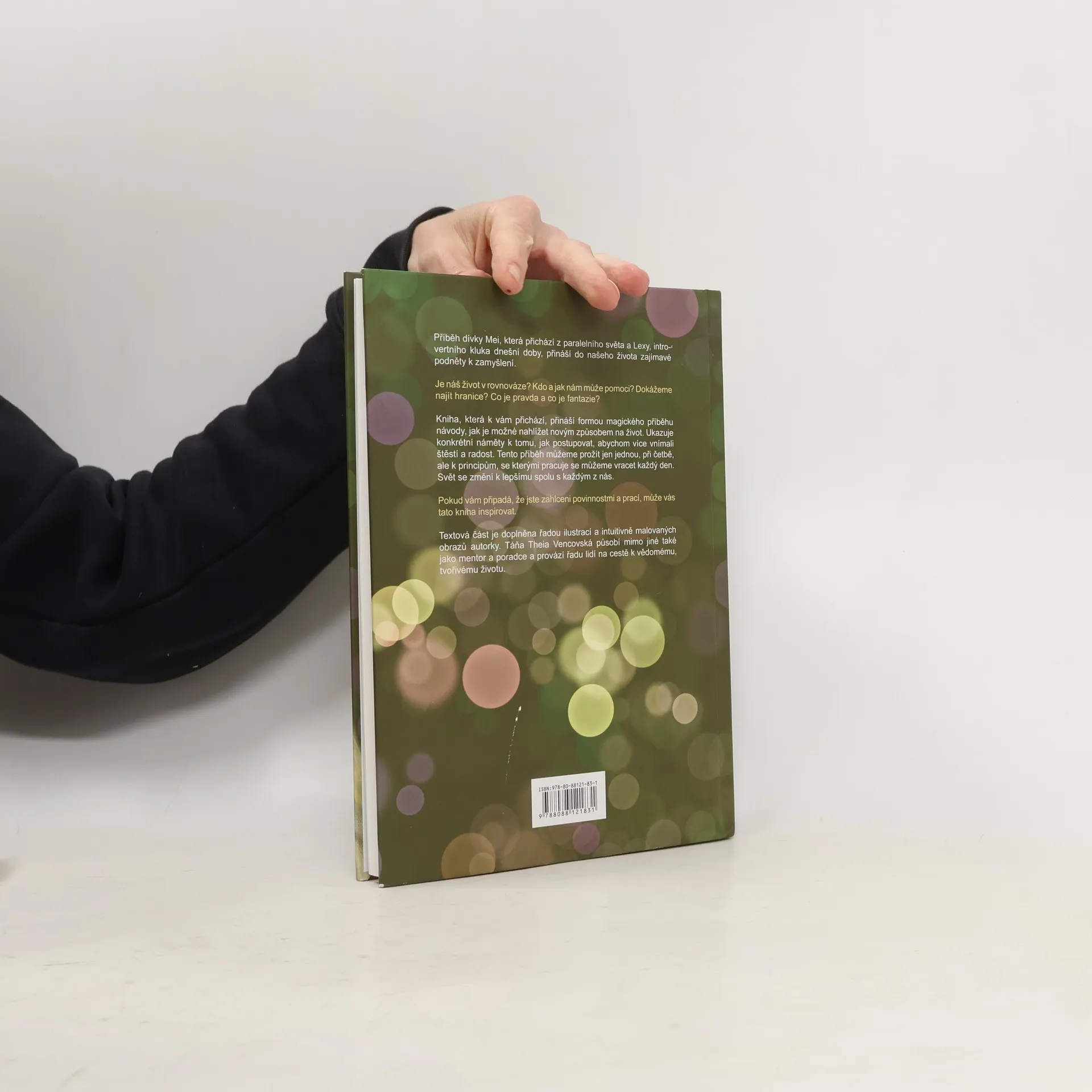 Příběh dívky Mei, která přichází z paralelního světa a Lexy, introvertního kluka dnešní doby, přináší do našeho života zajímavé podněty k zamyšlení. Kniha nás vede po lince protínajících se časoprostorových realit. Je náš život v rovnováze? Kdo a jak nám může pomoci? Dokážeme najít hranice? Co je pravda a co fantazie? Kniha, která k vám přichází, přináší formou magického příběhu návody, jak je možné nahlížet novým způsobem na život. Ukazuje konkrétní náměty k tomu, jak postupovat, abychom více vnímali štěstí a radost. Tento příběh můžeme prožít jen jednou, při četbě, ale k principům, se kterými pracuje, se můžeme vracet každý den. Svět se změní k lepšímu spolu s každým z nás. Pokud vám připadá, že jste zahlceni povinnostmi a prací, může vás tato kniha inspirovat. Textová část je doplněna řadou ilustrací a intuitivně malovaných obrazů autorky. Táňa Theia Vencovská působí mimo jiné také jako mentor a poradce a provází řadu lidí na cestě k vědomému, tvořivému životu. Autorka paní Vencovská se také věnuje biorezonanci: https://www.biorezonance- bez.cz/