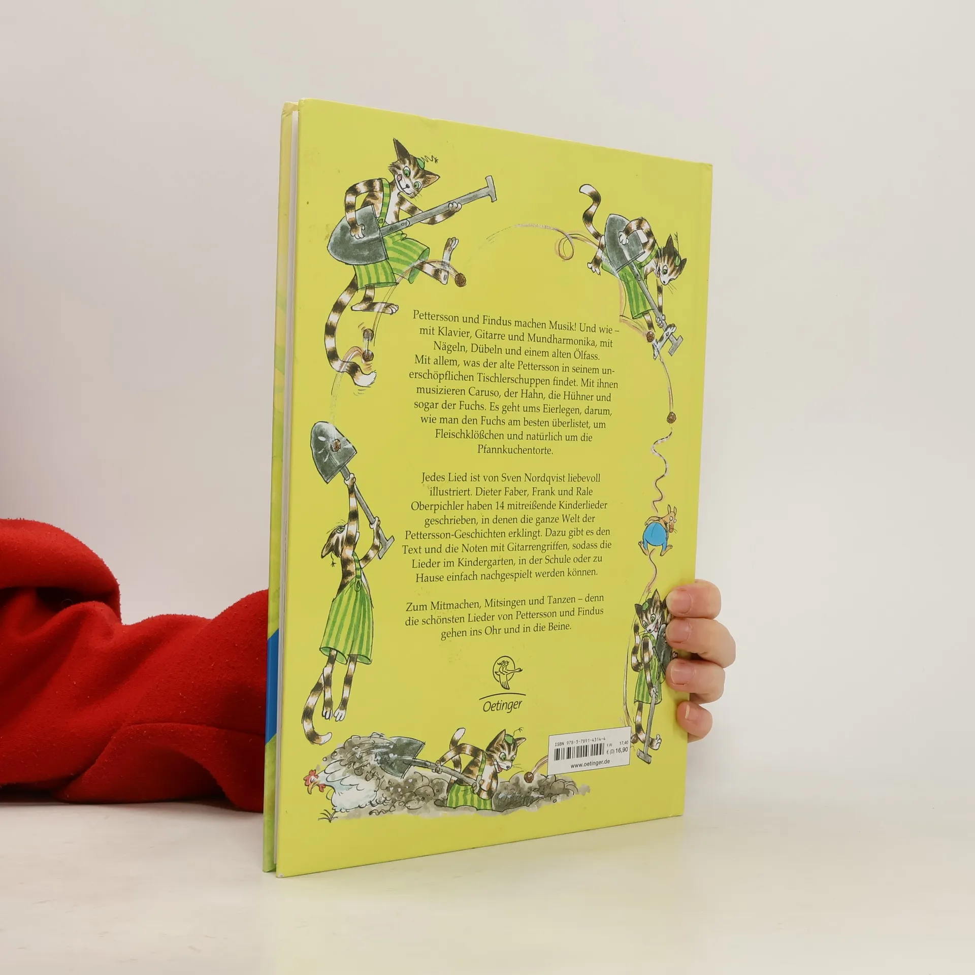 "Das große Liederbuch von Pettersson und Findus" öffnet die Tür zu einem musikalischen Abenteuer, in dem der erfinderische Pettersson und sein quirliger Kater Findus die Hauptrolle spielen. Dieses erste Liederbuch des beliebten Duos ist prall gefüllt mit vierzehn bezaubernden Kinderliedern, die zum Singen, Hören und Tanzen einladen. Begleitet von einer Vielzahl an Instrumenten und Gegenständen aus Petterssons Tischlerschuppen, entsteht eine musikalische Welt, in der neben dem Duo auch Caruso der Hahn, die Hühner und sogar der Fuchs ihren Teil beitragen. Thematisch drehen sich die Lieder um das tägliche Leben und die Abenteuer auf dem Hof, von Eierlegen über die List gegenüber dem Fuchs bis hin zu Fleischklößchen und der unvermeidlichen Pfannkuchentorte. Ein Highlight ist das Geburtstagslied für Findus, das leicht auf jedes Geburtstagskind umgedichtet werden kann. Die Lieder wurden von Dieter Faber, Frank und Rale Oberpichler mit viel Liebe zum Detail kreiert und von Sven Nordqvist, dem Meister der Illustration, humorvoll in Szene gesetzt. Jedes Lied wird durch Noten und Gitarrengriffe ergänzt, sodass sie leicht nachgespielt werden können - ideal für den Einsatz im Kindergarten, in der Schule oder einfach zu Hause.