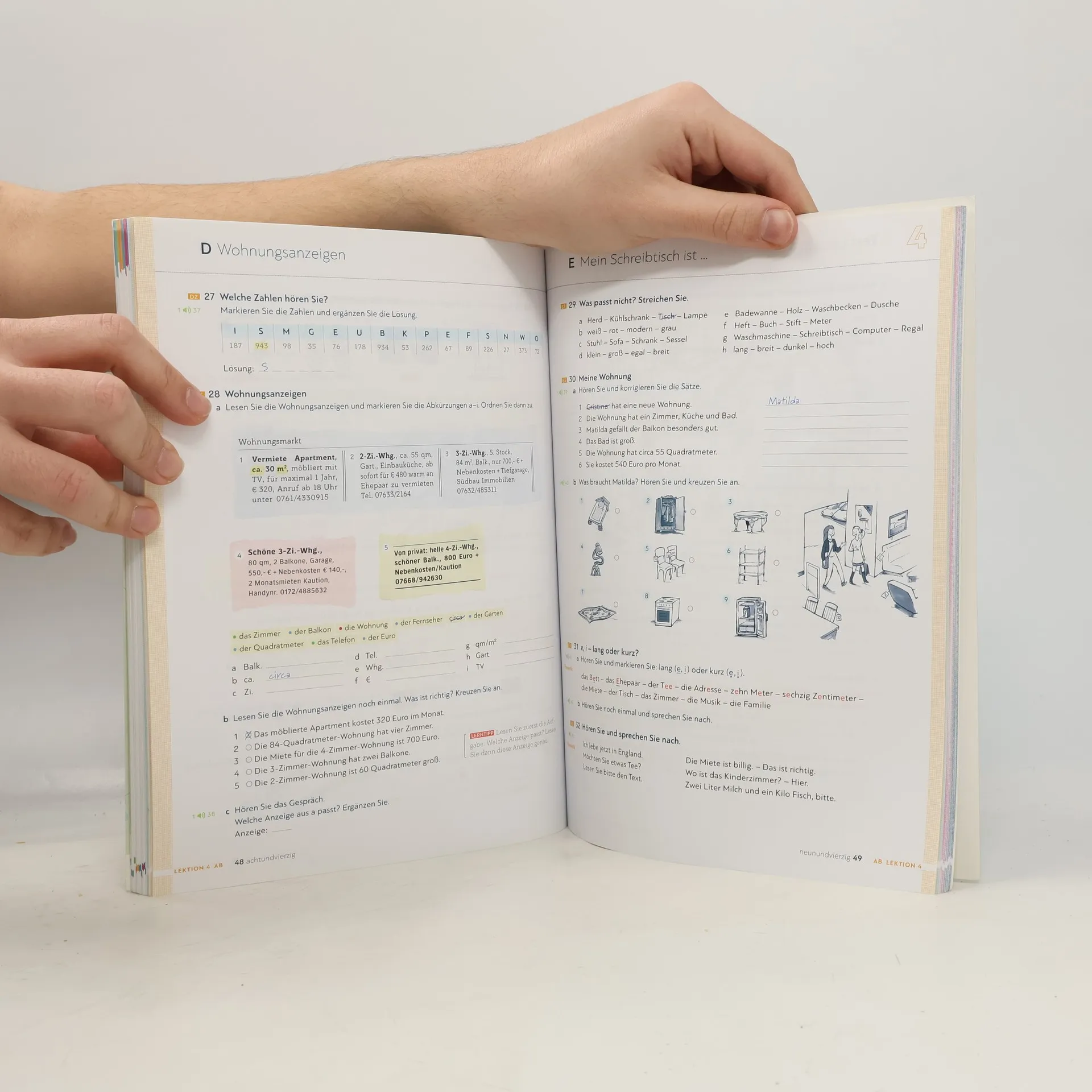 Zielniveau A1.1 Teilband A1.1 Kursbuchteil - alle Lektionen folgen einem klaren Aufbau für hohe Lerntransparenz - neue Foto-Hörgeschichten als Einstieg in jede Lektion - interessante Texte und vielfältige Landeskunde - induktive Grammatik fördert Bewusstmachung und Verständnis - Vorbereitung auf den Berufsalltag durch verstärkten Berufsbezug - Stärkung der Lernerautonomie durch eine Doppelseite zu Grammatik und Redemitteln mit Übungen und Lernhilfen am Ende jeder Lektion - Transparenz durch Lernziele mit der Möglichkeit zur Selbsteinschätzung - flexible Ergänzung der Lektionsinhalte durch die „Zwischendurch mal …-Seiten“ - alle Audiodateien und Filme zum Kursbuch über mobile Geräte (Smartphone, Tablet-PC) abrufbar mit kostenloser App Arbeitsbuchteil - Übungen und Wiederholungsübungen in verschiedenen Schwierigkeitsstufen zur Binnendifferenzierung - ein systematisch aufgebautes Schreibtraining - Wortschatztraining für einen gezielten Wortschatzerwerb - ein ausführliches Phonetikprogramm - Aufgaben zum Mehrsprachigkeitsansatz - Prüfungsaufgaben - Lernertests mit Selbstauswertung und weiterführendem Trainingsprogramm im Lehrwerkservice - integrierte Fokus-Seiten bieten zahlreiche zusätzliche Materialien zu den Themen Beruf und Alltag. - Lernwortschatz-Seiten am Ende des Buches mit Illustrationen und Beispielsätzen, Schreibzeilen und Lerntipps - eine systematische Grammatik-Übersicht im Anhang