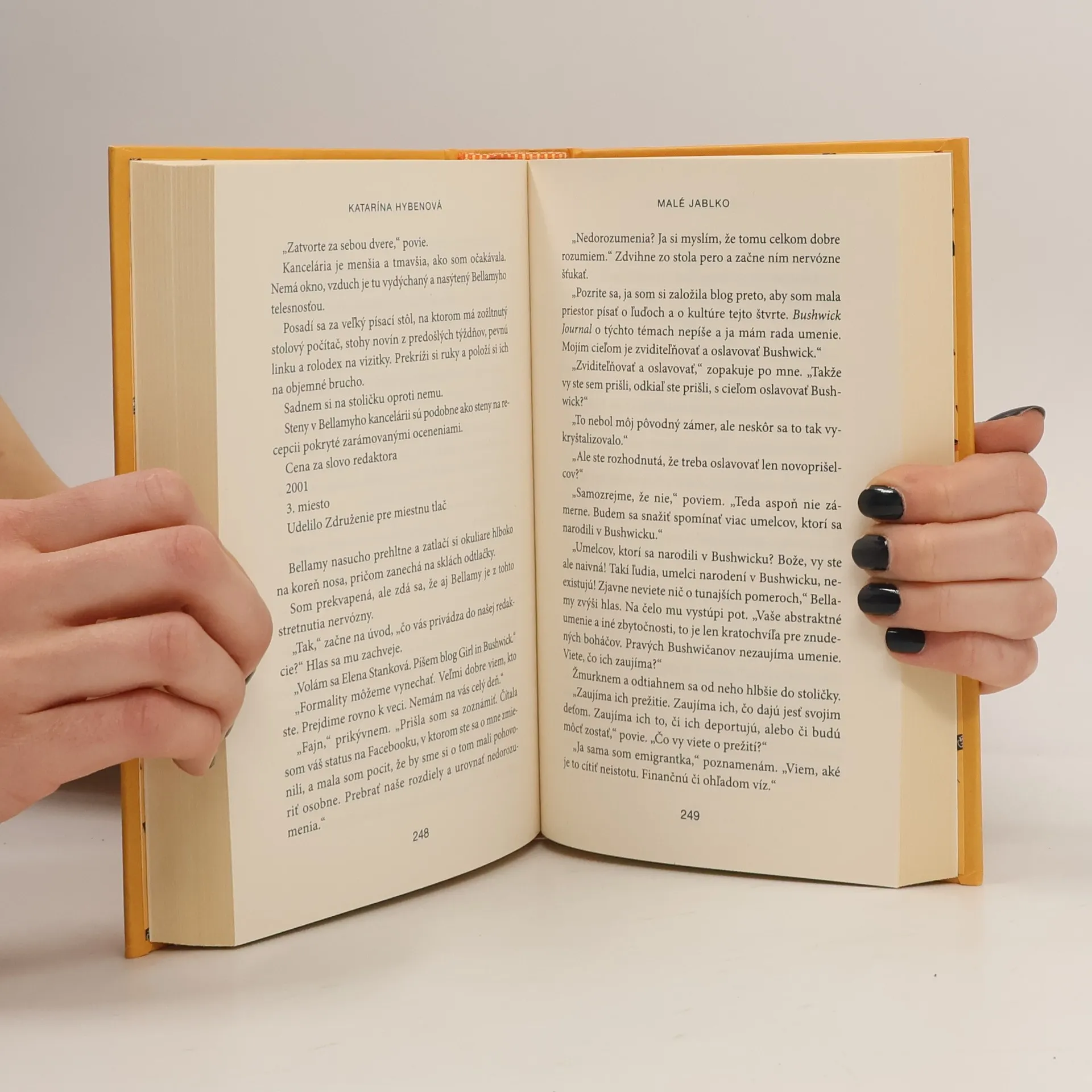 Elena dokončí postgraduálne štúdium na prestížnej právnickej fakulte v New Yorku a očarená vzrušujúcou metropolou sa rozhodne pre nečakaný zlom vo svojom živote. Odmietne významné postavenie v bratislavskej advokátskej kancelárii a s priateľkou z univerzity si prenajme byt v brooklynskej štvrti Bushwick. Autorka zobrazuje Bushwick tak, ako si ho zamilovala – ako drsný, škaredý, nežný a krásny zároveň. V tejto štvrti prežíva aj neopakovateľný pocit slobody, keď sa prvýkrát cíti sama sebou, môže vyskúšať takmer všetko bez strachu a odsudzovania a prežíva aj lásku s mužom a so ženou. Bushwick v tých rokoch zaľudnili umelci a naplnil ho bezbrehou kreatívnou energiou. Elena si v kaviarni Tiny Apple nájde svoju komunitu a zamiluje sa do nevšedných ľudí, street artu, nových zážitkov, DYI kultúry, ktorú táto štvrť ponúka. Keď sa zoznámi s megaúspešným choreografom Júliusom Smrekom, stáva sa súčasťou česko-slovenskej imigrantskej komunity. Pod Smrekovým vplyvom sa rozhodne založiť úspešný blog zvaný Girl in Bushwick, ktorý pritiahne pozornosť nadšených sledovateľov, ale aj trolov, ktorí sa s jej úspechom nevedia zmieriť. Katarína Hybenová napísala veľmi zaujímavý a príťažlivý román, príbeh Slovenky, ktorá vlastnou snahou a vnímavosťou dosiahla úspech a uznanie vo štvrti, kde pohoreli aj rodení Newyorčania. Navyše sa zoznámime s česko-slovenskou komunitou, ktorá sa na začiatku dvadsiateho prvého storočia sformovala v New Yorku.