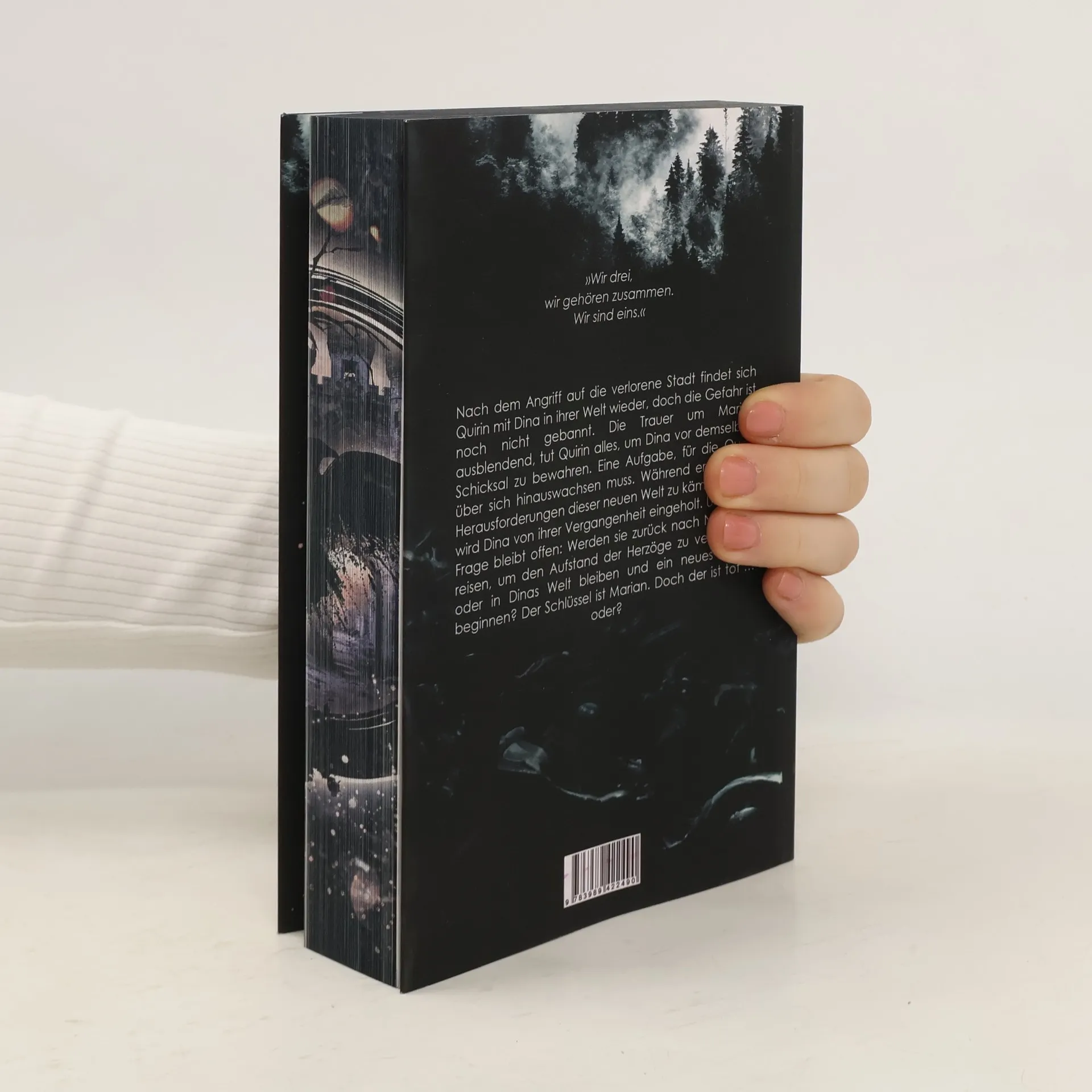 »Wir drei, wir gehören zusammen. Wir sind eins.« Nach dem Angriff auf die verlorene Stadt findet sich Quirin mit Dina in ihrer Welt wieder, doch die Gefahr ist noch nicht gebannt. Die Trauer um Marian ausblendend, tut Quirin alles, um Dina vor demselben Schicksal zu bewahren. Eine Aufgabe, für die Quirin über sich hinauswachsen muss. Während er mit den Herausforderungen dieser neuen Welt zu kämpfen hat, wird Dina von ihrer Vergangenheit eingeholt. Und eine Frage bleibt offen: Werden sie zurück nach Nadiraan reisen, um den Aufstand der Herzöge zu verhindern, oder in Dinas Welt bleiben und ein neues Leben beginnen? Der Schlüssel ist Marian. Doch der ist tot … oder?